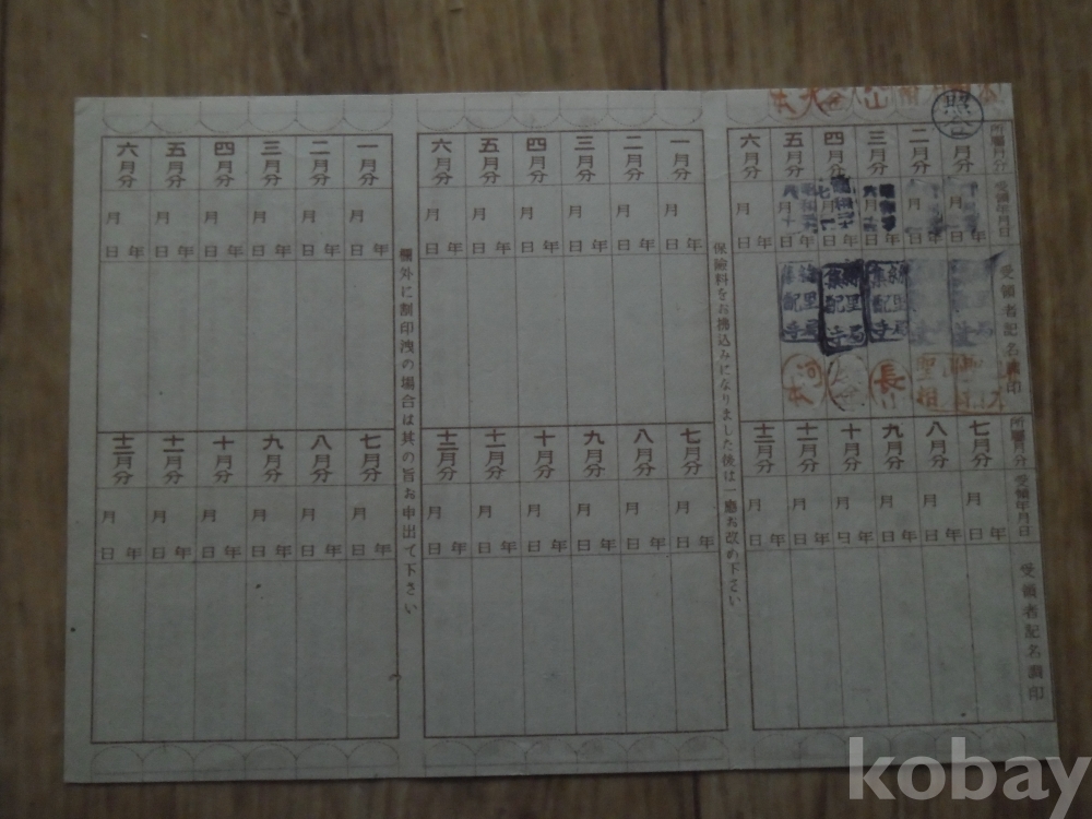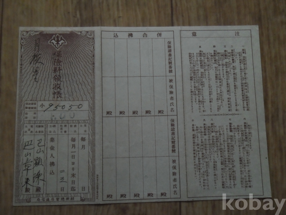 소화19년 조선총독부체신국 발행 보험료영수장
