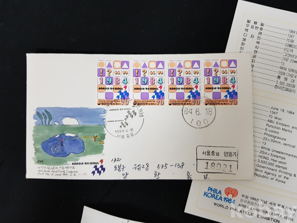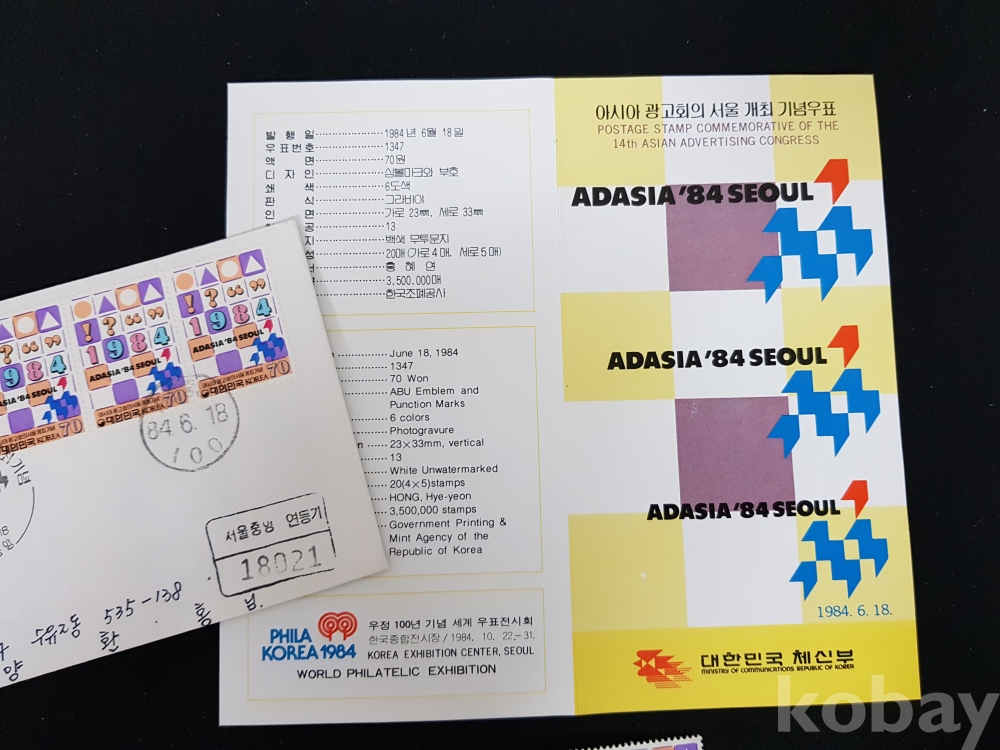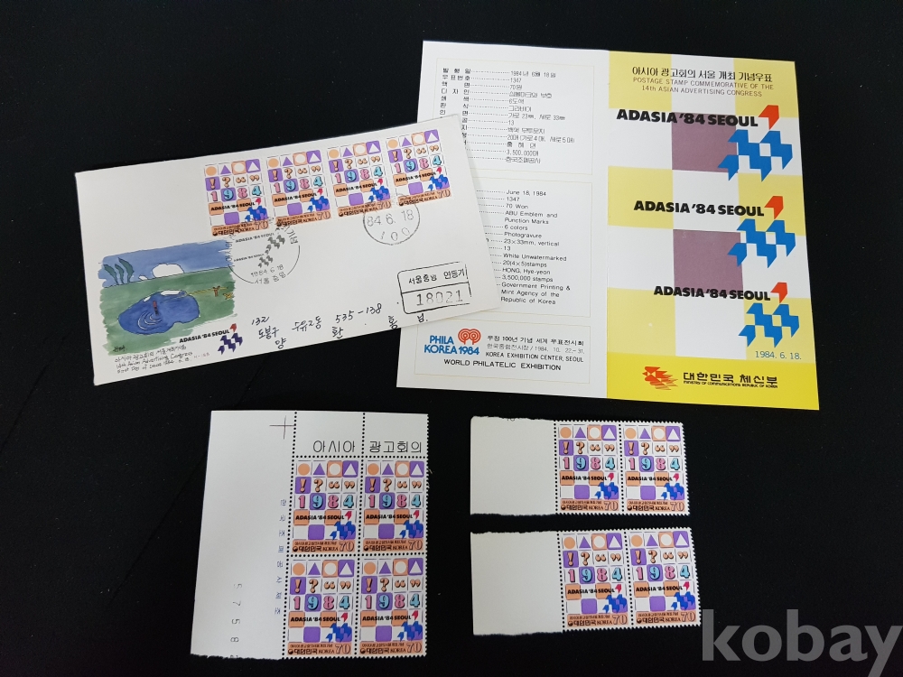 - 1984년 아시아 광고회의 서울 개최 안내카드, 초일봉피, 명판 등 모음