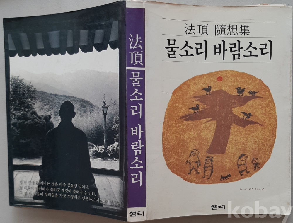 물소리 바람소리-법정 스님 1987년12판 샘터사 발행 표지 및 속표지 그림 장욱진 판화 뒷표지 사진 윤주심 본문컷 오수환
