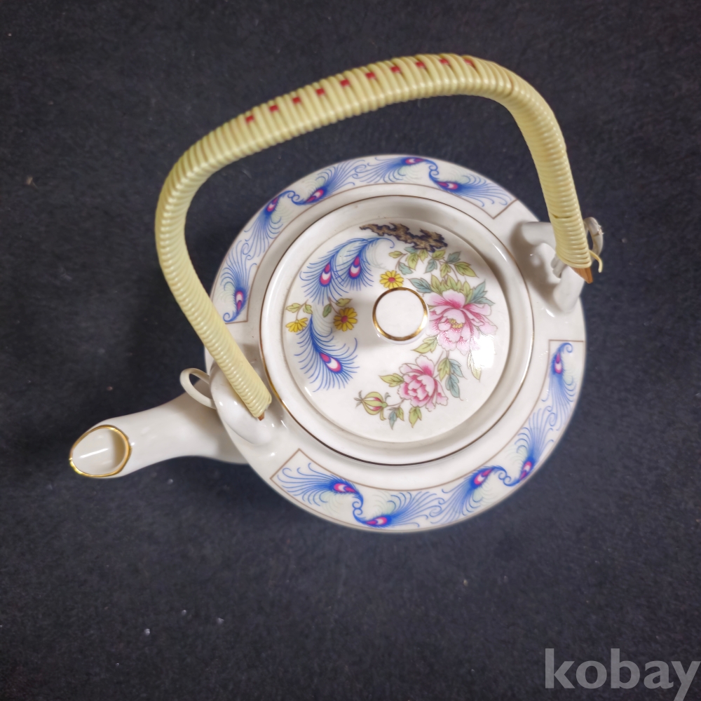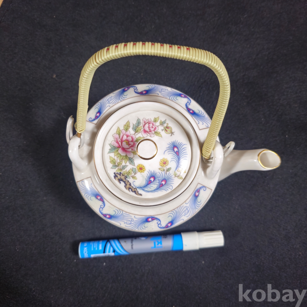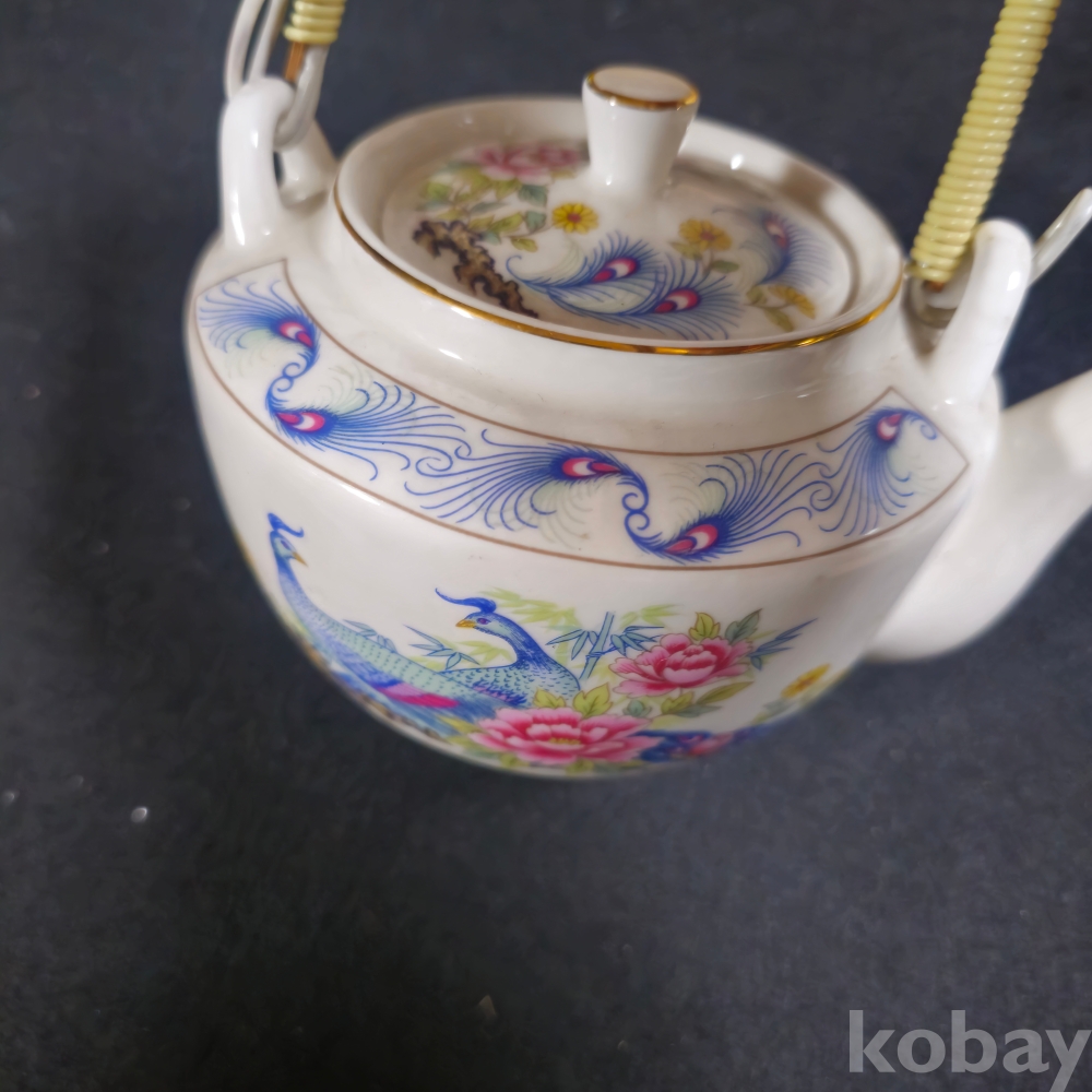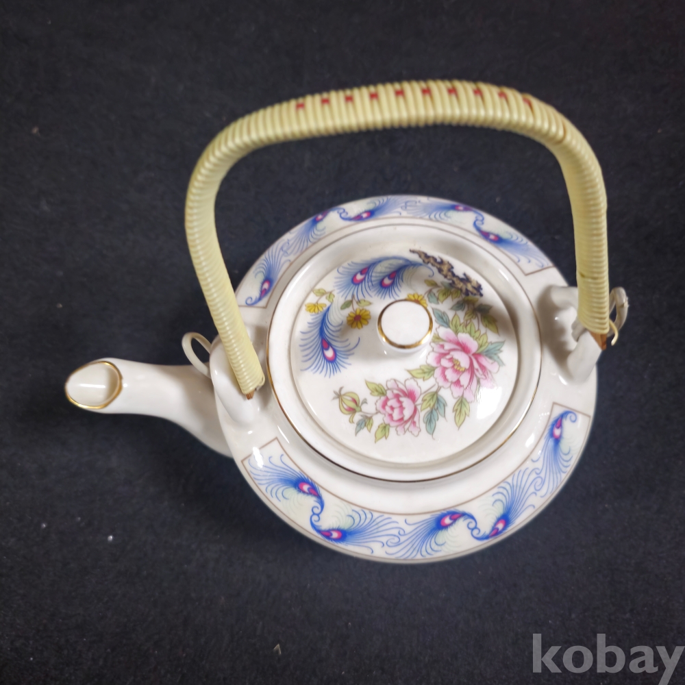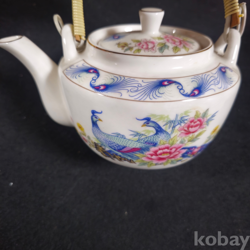 (((근현대사자료/주전자))) 오래전 행남사에서만든 칠면조 & 꽃그림 도자기 주전자