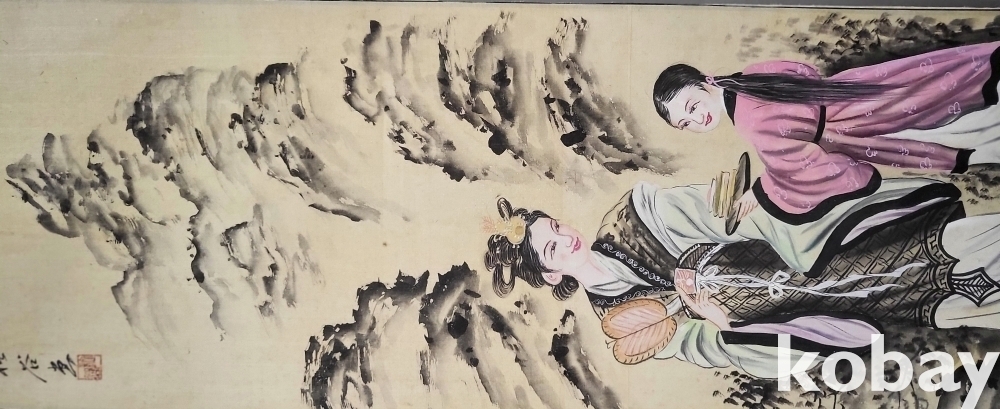 松谷 作 비단에 채색된 명작(名作) 신선도(神仙圖)입니다,