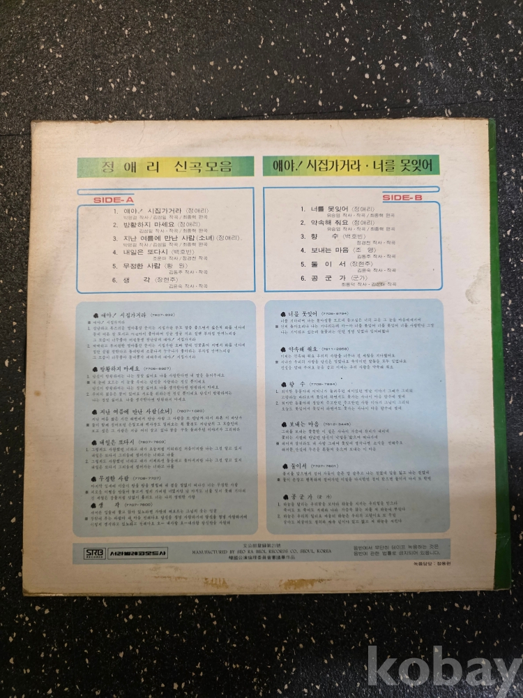 | 자켓상태 | G : 눈에 띄는 손상, 테이프, 필기 존재 | 음반상태 | EX : 재생에 영향 없는 가벼운 기스 존재 | 발매정보 | 초반 | 가사지여부 | 무 |
