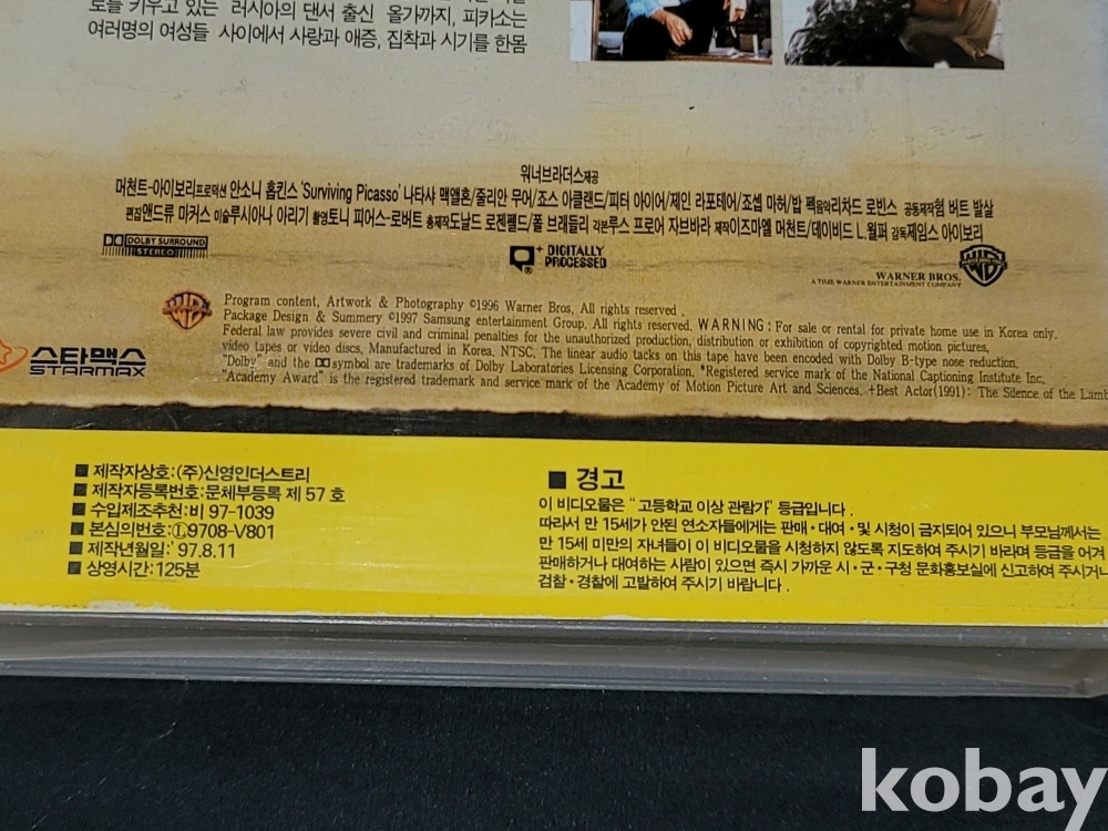 빈티지 1996년 개봉작 1997년 제작 피카소 영화 비디오테이프입니다.