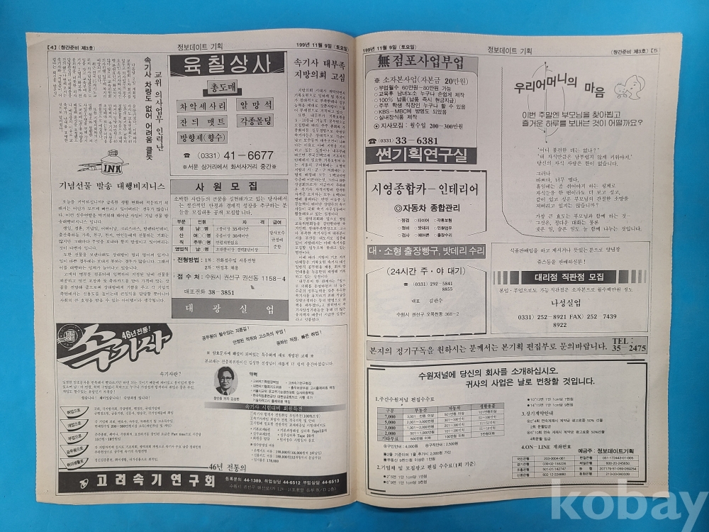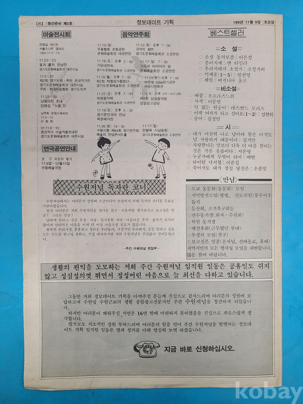 주간 수원저널 (창간준비 제3호). 1999년11월9일 발행소 수원시 권선구 세류1동 59-3 영산빌딩 202호 [주간 수원저널] 총 8면