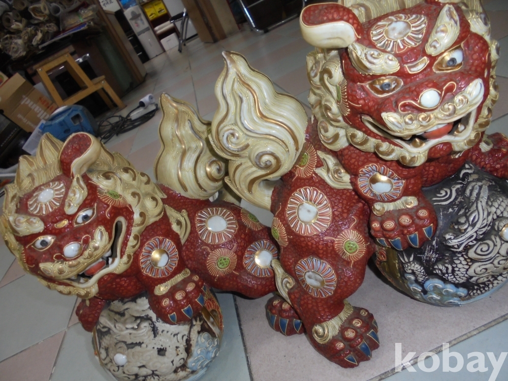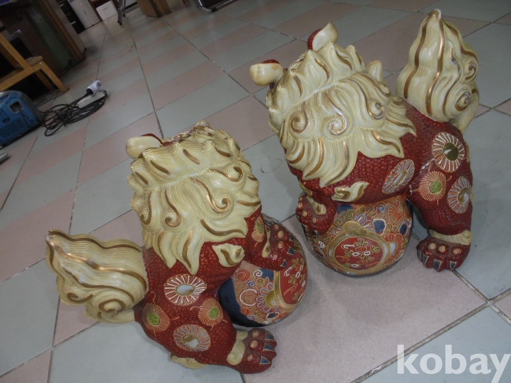 곳있는 불을 제어하는 무겁고 화려한입체 도자기 해태상 1쌍 가로세로높이 28 x 24 x 30 cm 외사진참조