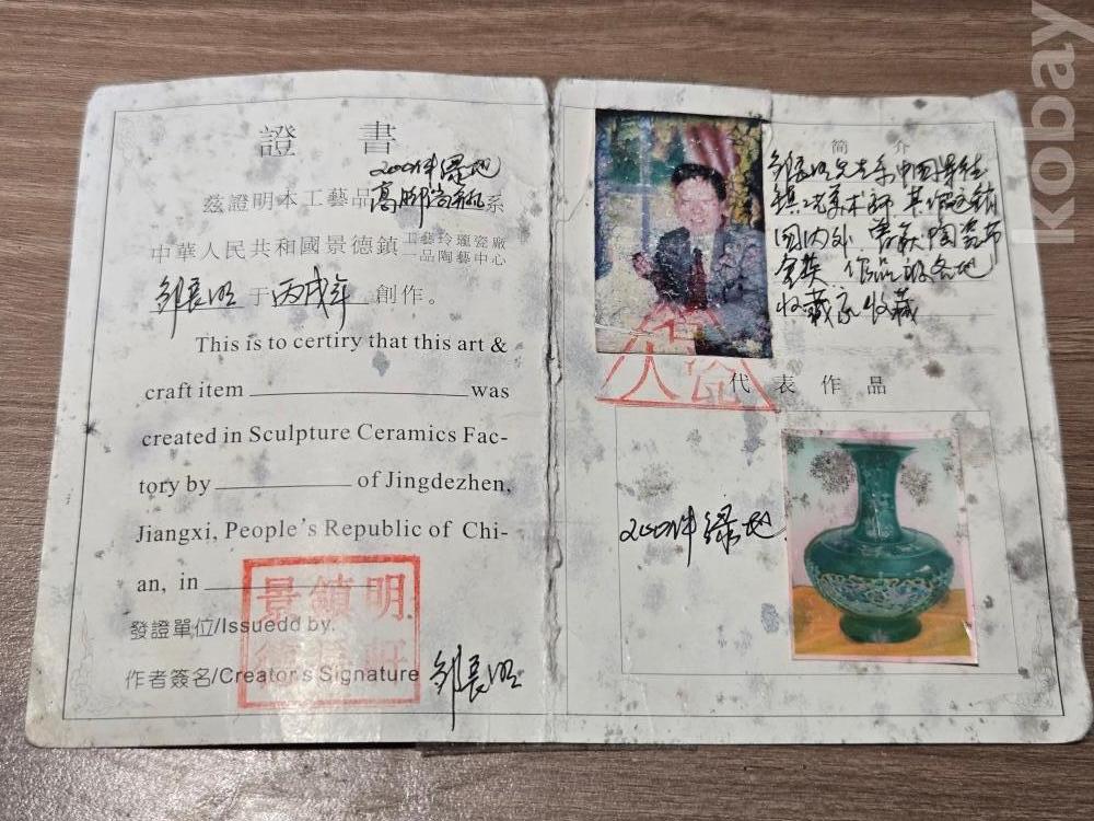 작가에대한 구체사항은 알지못하지만 시중에서 유통되는 저가형의 모구도자기에 인쇄도안을 올린채 가짜보증서를달고 저가에 유통되는 도자들과 비교를 불허하는 중국 최고의 예술작품도자기입니다.