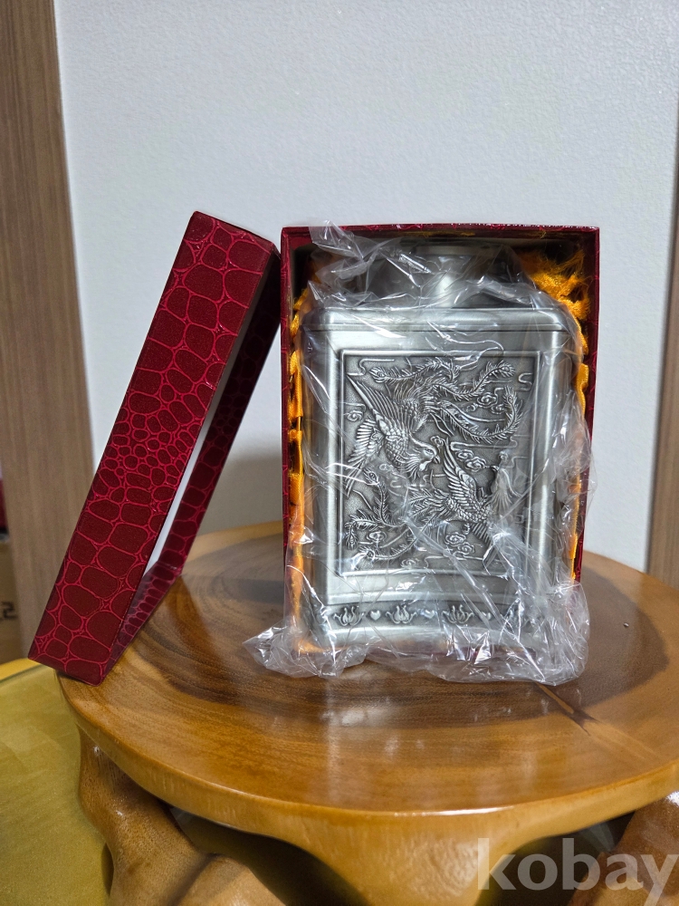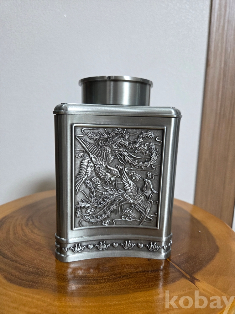 미사용ㅡ고급 사각 주석 차통입니다ㆍ높이 16 ㆍ돌아가면서 양각무늬가 멋있네요