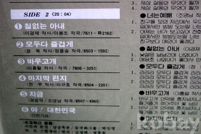 수록 곡 목은 사진을 참조하시기 바랍니다