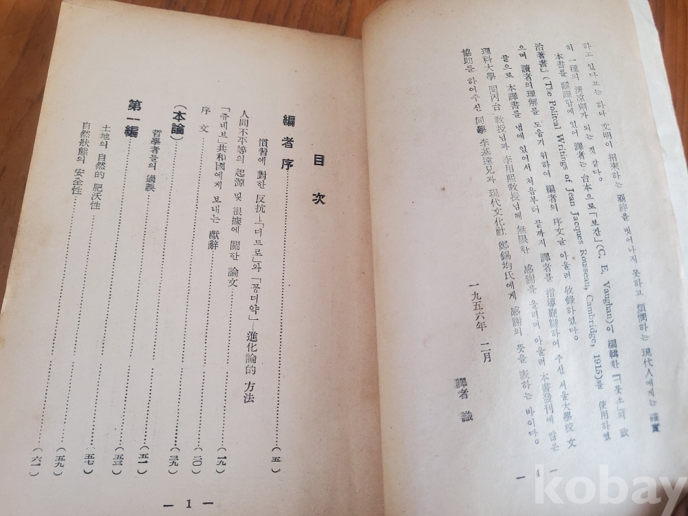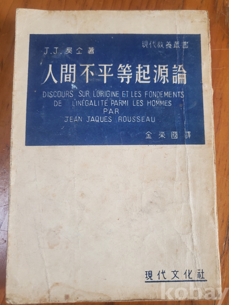 1. 인간불평등기원론, 룻소(이영국 역), 현대문화사, 1956년, 241쪽, 상태 상, 사진 참조