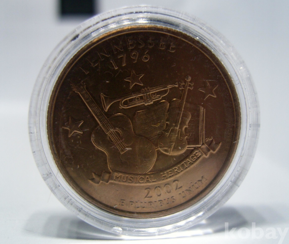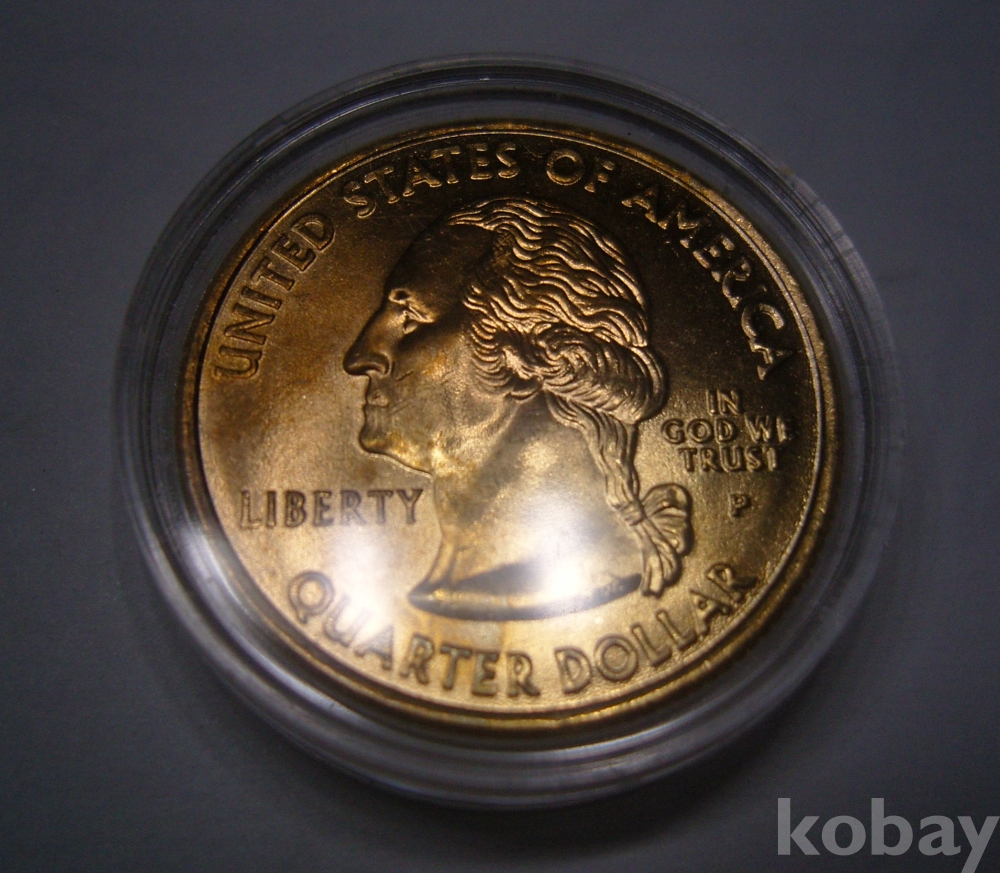희귀한 미국 쿼러 25센트 2002년 테네시주 기념주화 24 KGP 금도금 (Mint)