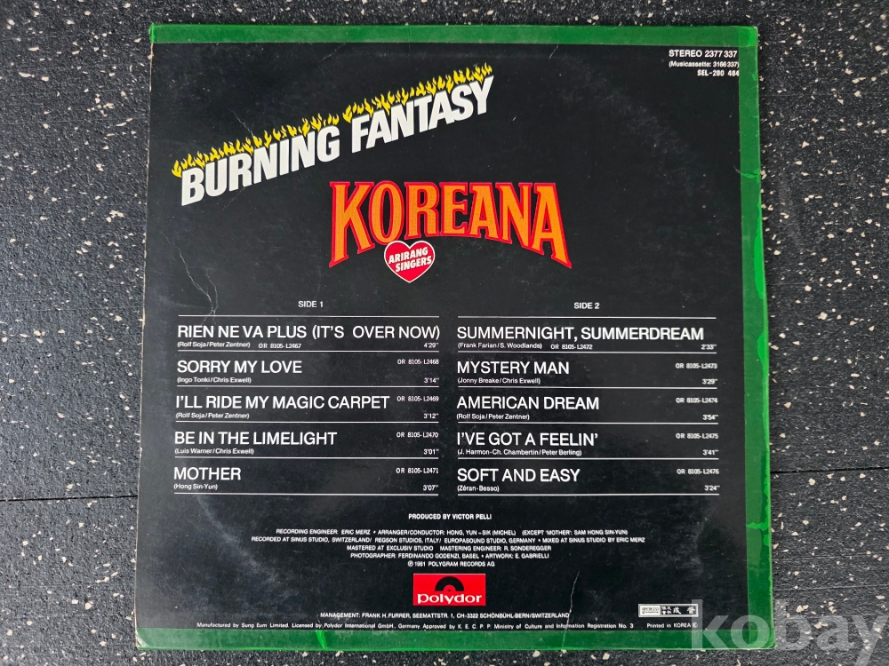 | 자켓상태 | G : 눈에 띄는 손상, 테이프, 필기 존재 | 음반상태 | EX : 재생에 영향 없는 가벼운 기스 존재 | 발매정보 | 초반 | 가사지여부 | 무 |
