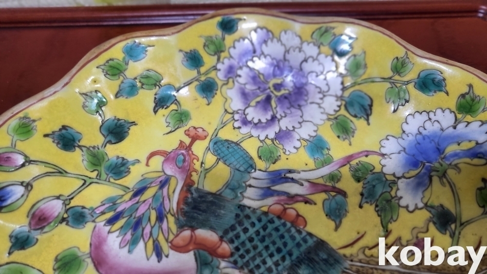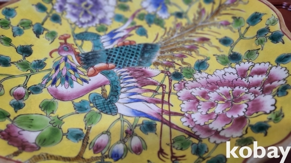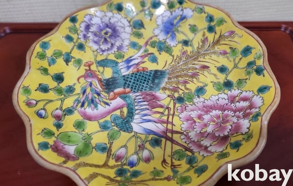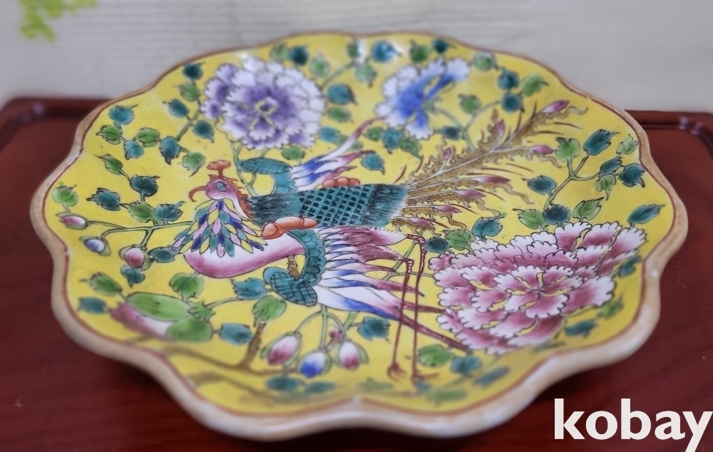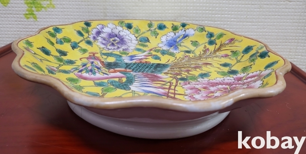 동치연제(1862ㅡ1874) 관지 봉황과 목단 문양 화형 완입니다,