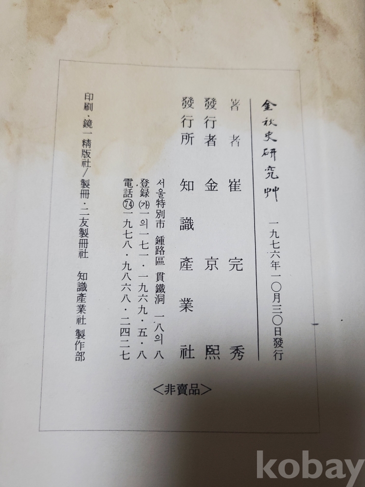 1. 김추사연구초, 최완수, 지식산업사, 1976년, 122쪽, 비매품, 상태 중 , 사진 참조