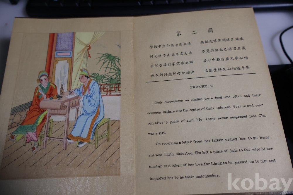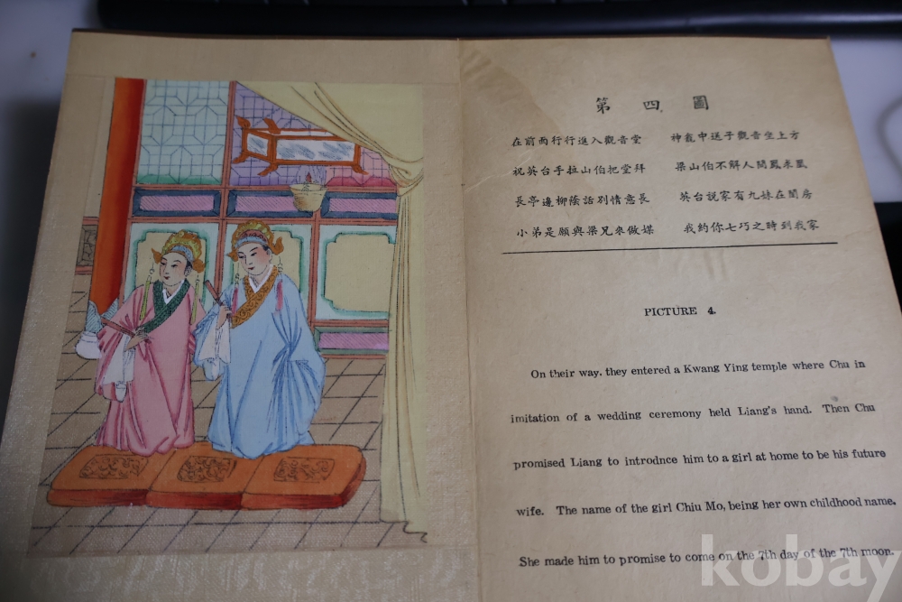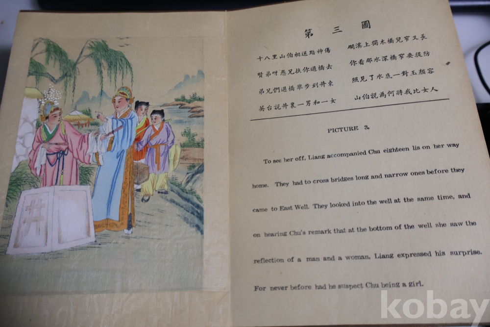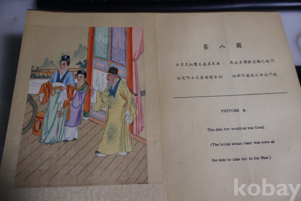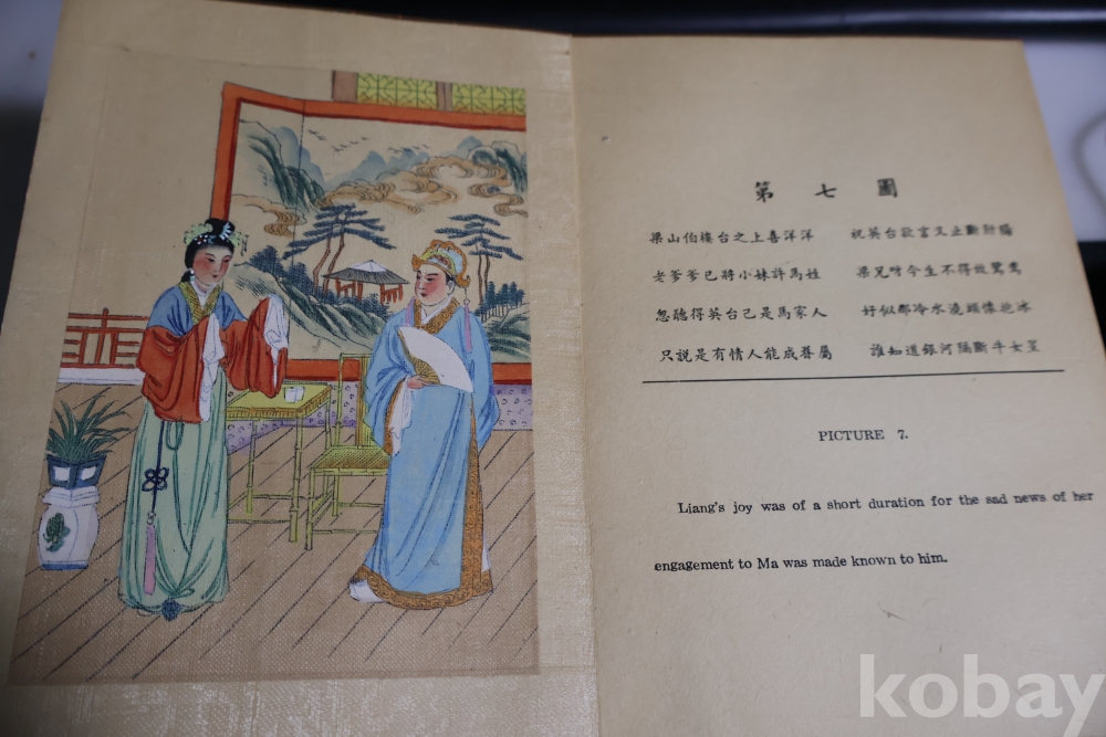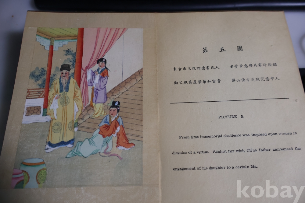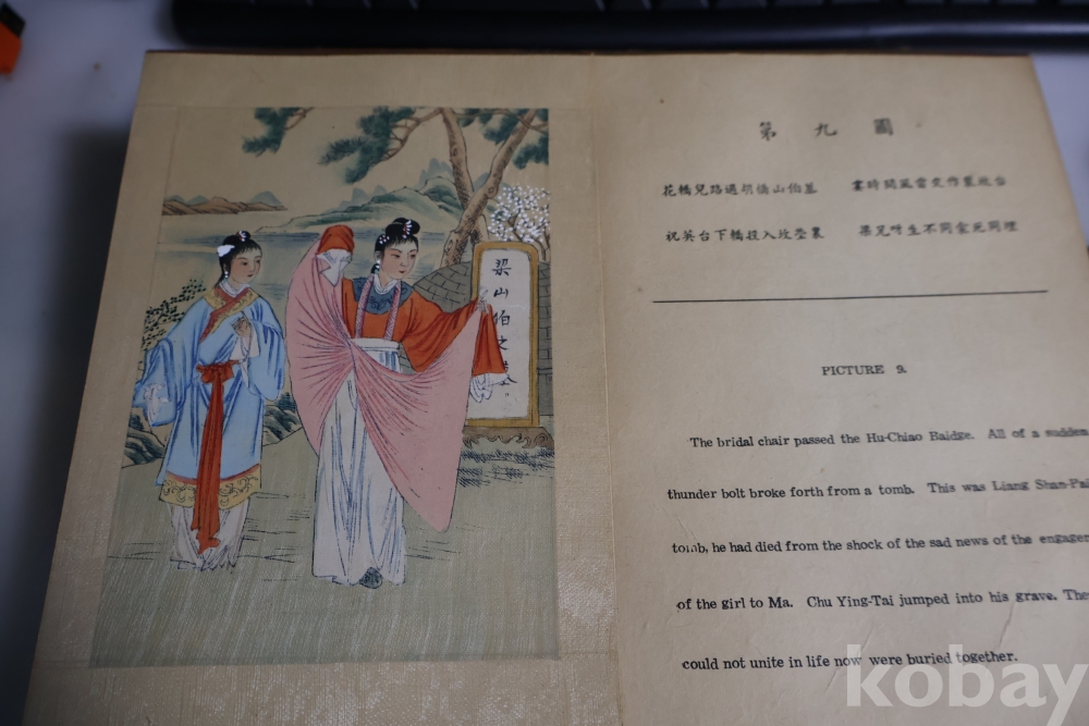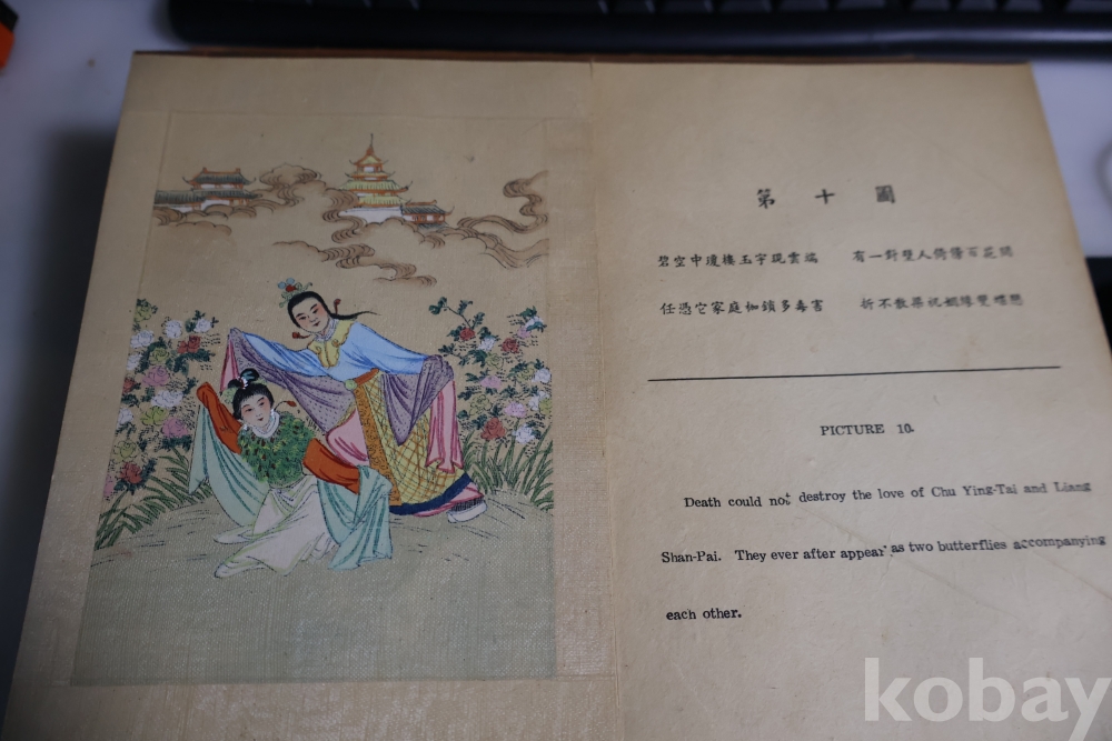 10장면의 비단 그림을 가진 청말기 중국의 문화를 알기기 위한 명저 임니다 열장면의 그림과 영어 한문으로 구성된 극히 귀한 명저 이며 축영대 양산박의 사랑이야기 임니다 나무판을 표지로 만든 대단한 고미술 임니다