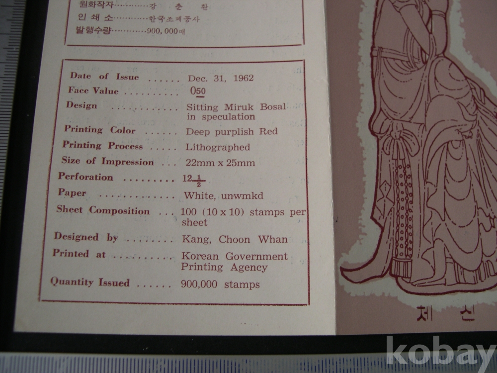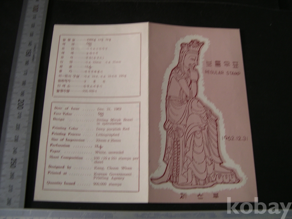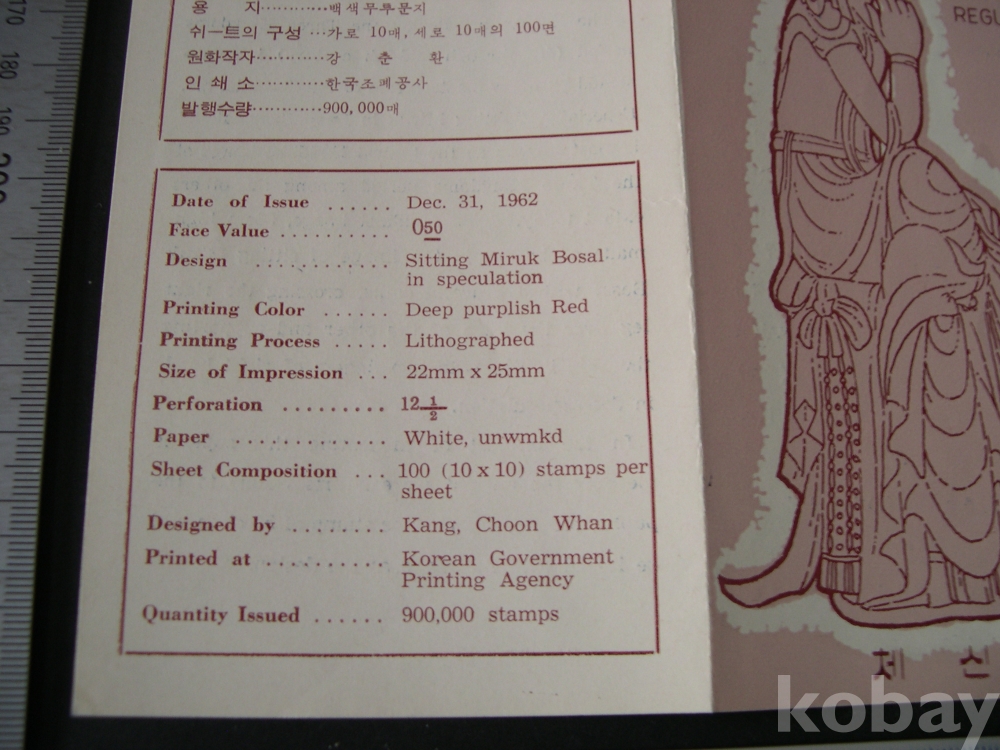 안내카드 #22627 : 50전 미륵보살반가상- 세원화 외산백자 (1962. 12. 31)