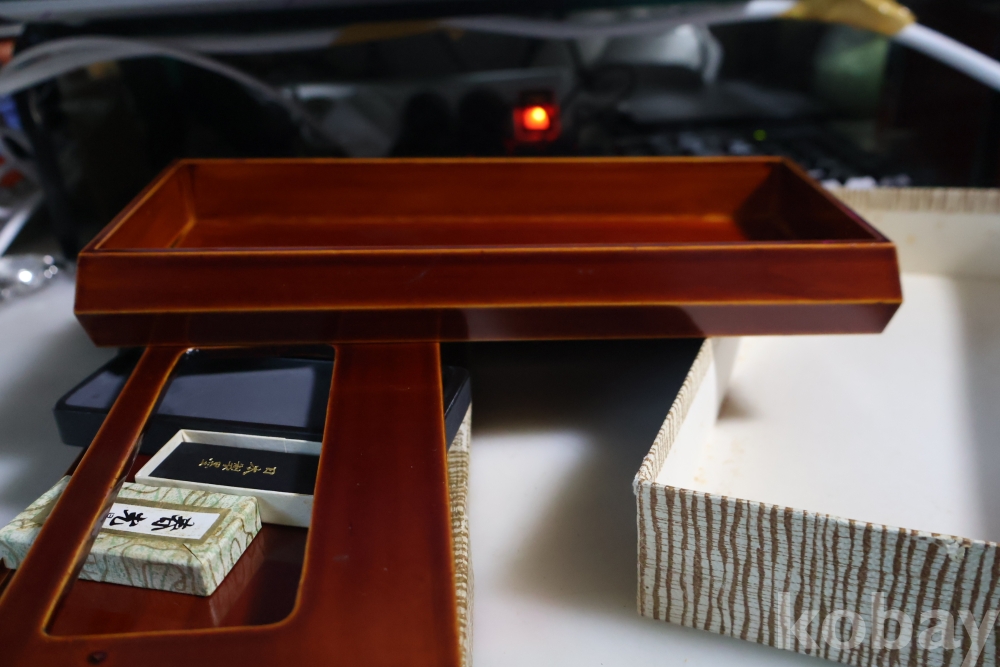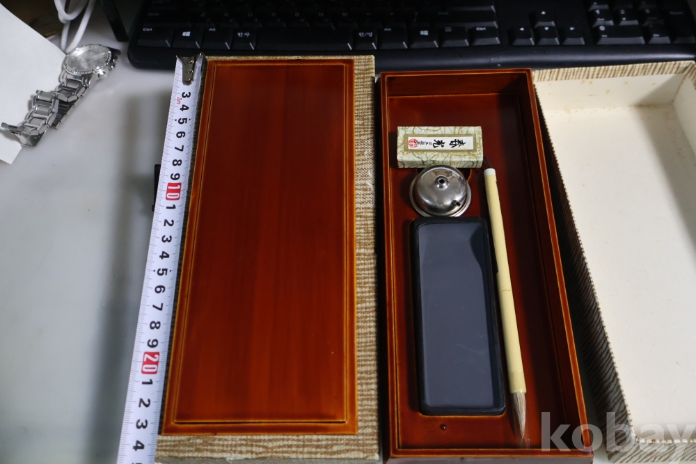일본 나무 옷칠 서예세트 임니다 고급 옷칠 된 명품 임니다 종이 상자는 세월의 흔적이 보임니다