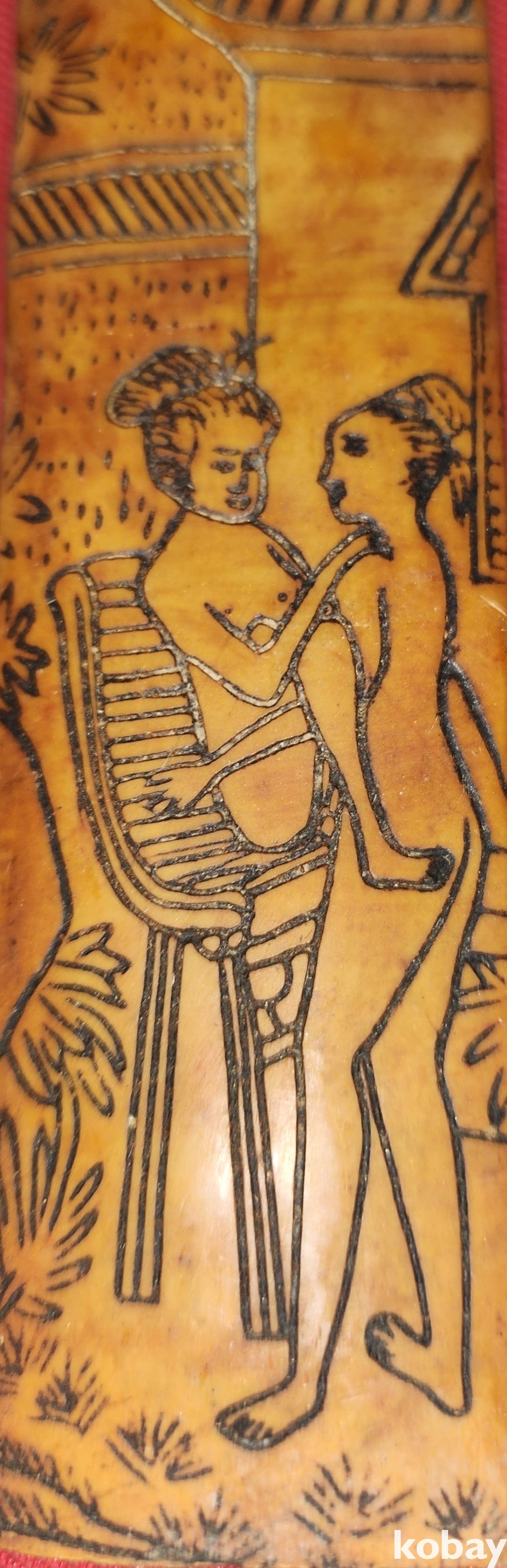 우각(牛角)으로 만든 남녀 애정행각을 음각으로 새겨진 뿔(角)조각품입니다,