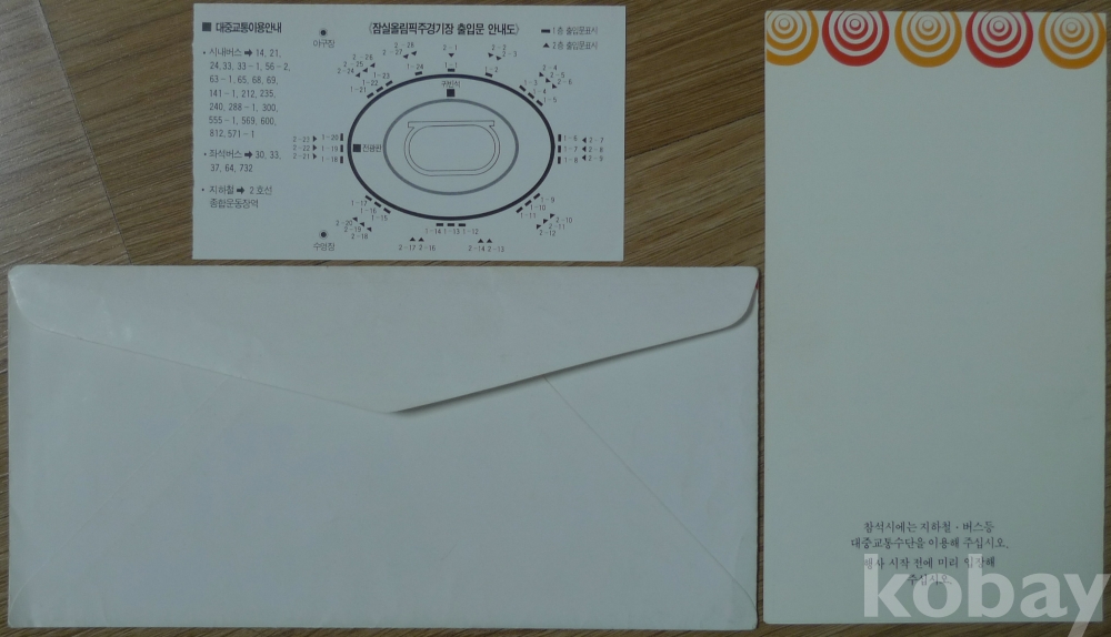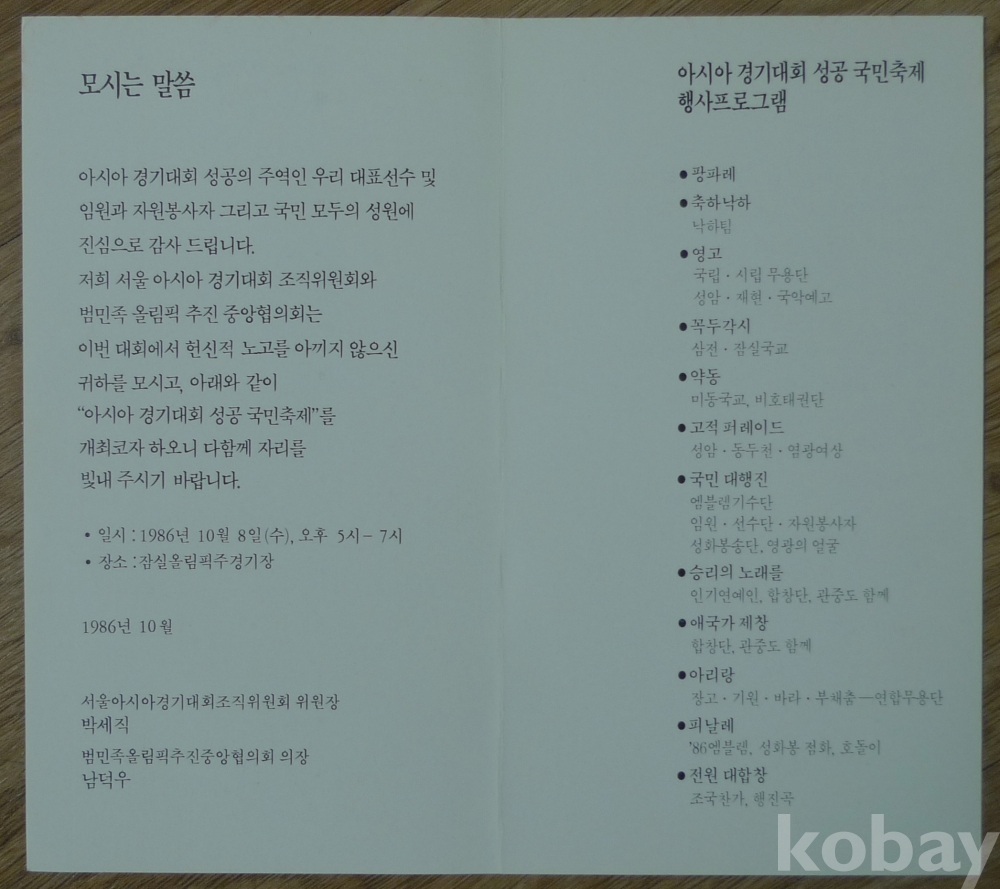1986년 아시아 경기 대회 성공 국민 축제 초청장과 입장권