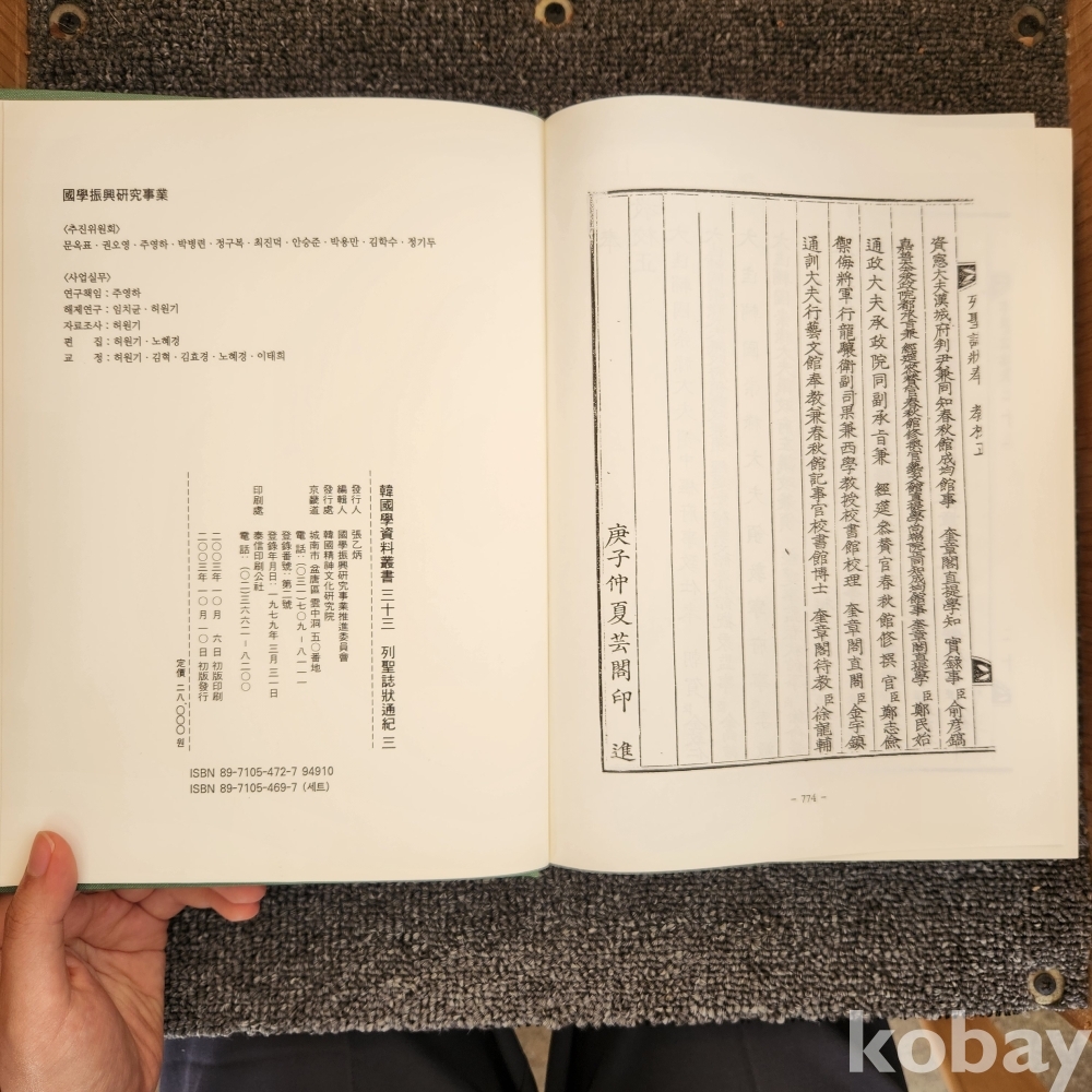 [조선시대사, 왕실 인물에 대한 공식기록] 한국정신문화연구원, <열성지장통기(列聖誌狀通紀 ) 3권>, 한국정신문화연구원, 2003, p. 774, 상태 중상급(사진참조)