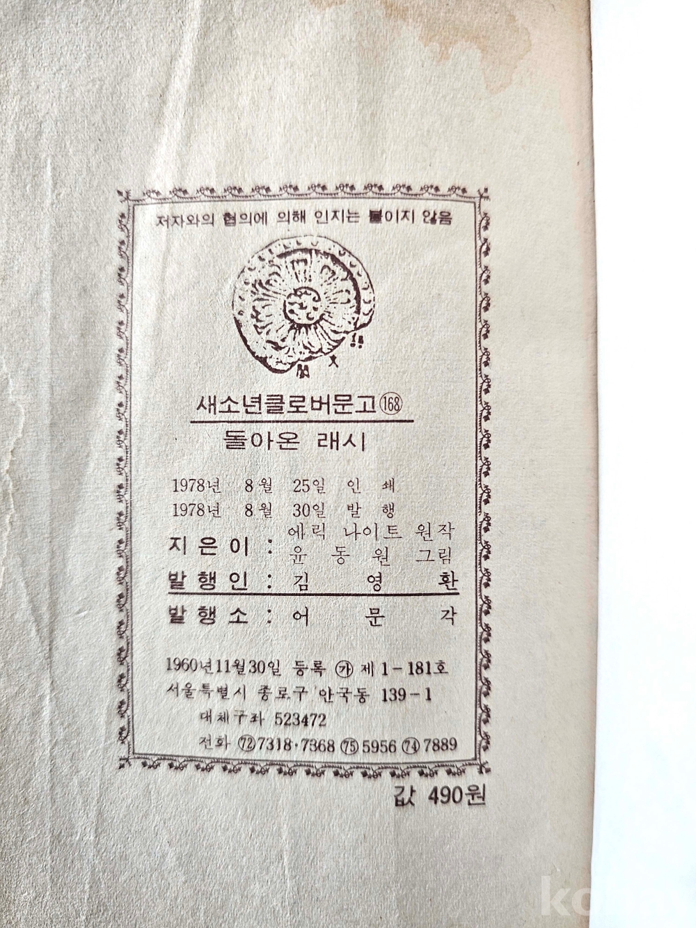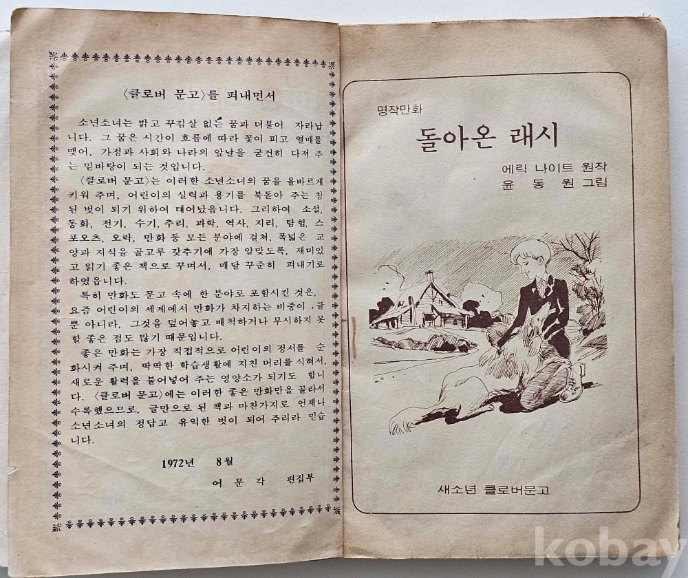 물 품 명 | 돌아온 래시 / 윤동원 만화 / 1978년 / 어문각 |