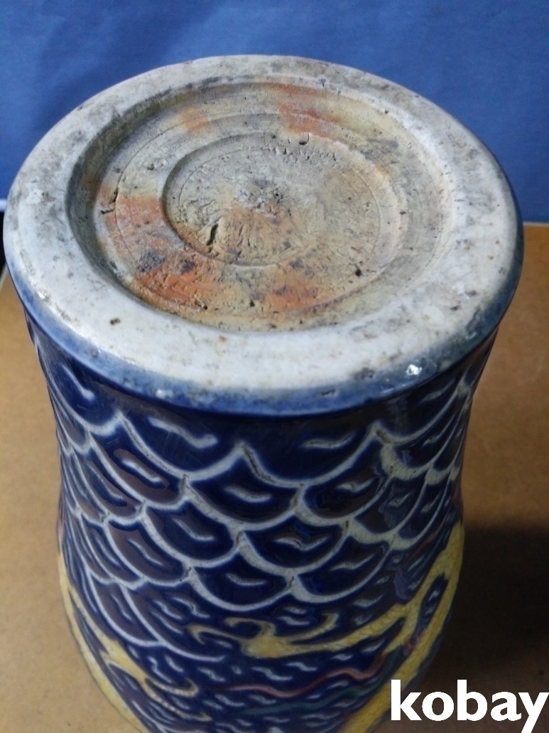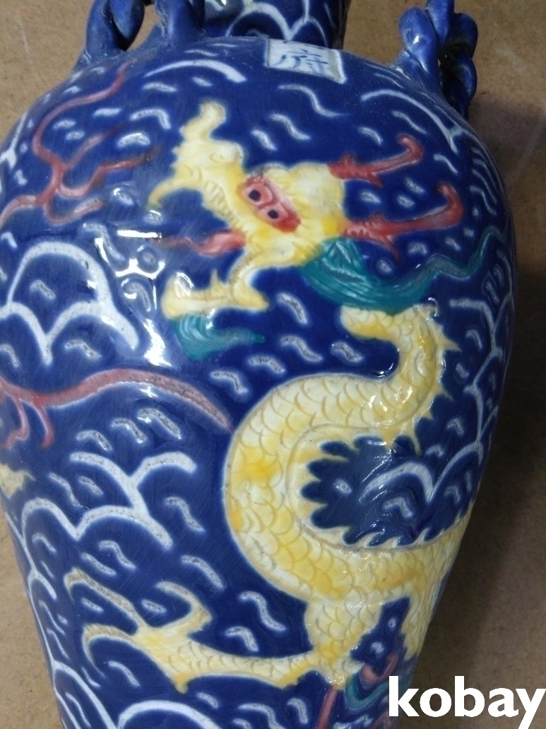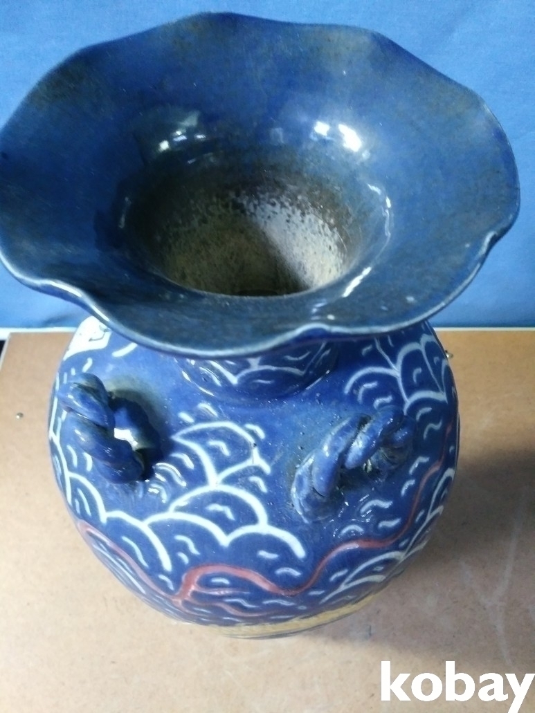 용 문양이 조각되어 있는 내부 도자기 입니다.