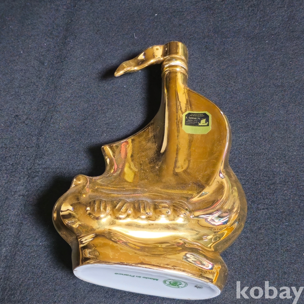 (((도자기술병))) 오래전 프랑스산 멋진 범선모습 LARSEN 황금빛 도자기 술병