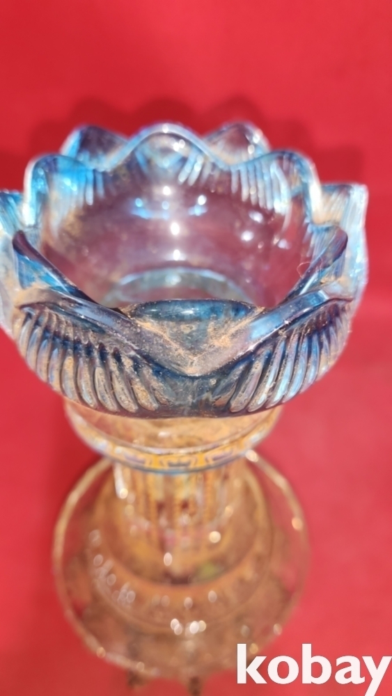 사리가 들어있는 연꽃문양 수정8각사리함입니다,