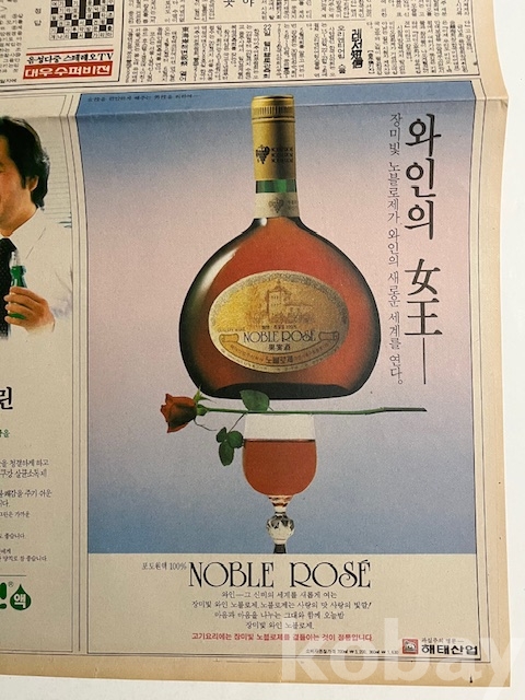 해태산업 와인 광고가 실린 한국일보 낱장입니다.