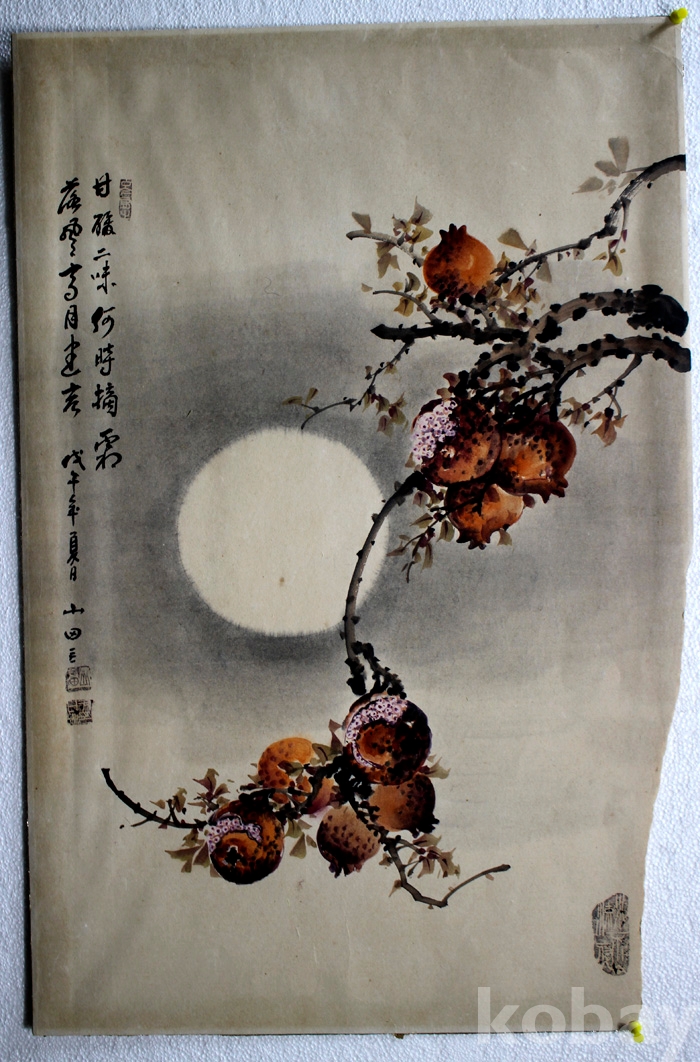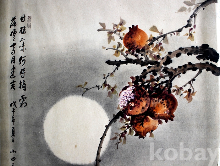 국전입선작가인 山田(산전) 윤일호의 작품 - 달밤의 석류..