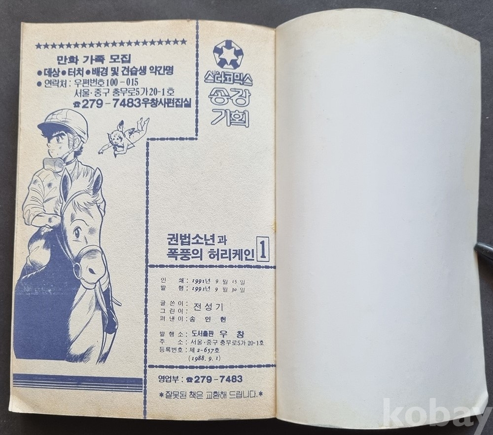 ee-33 / 스타 코믹스 만화 "권법소년과 폭풍의 허리케인" 전성기 글, 그림