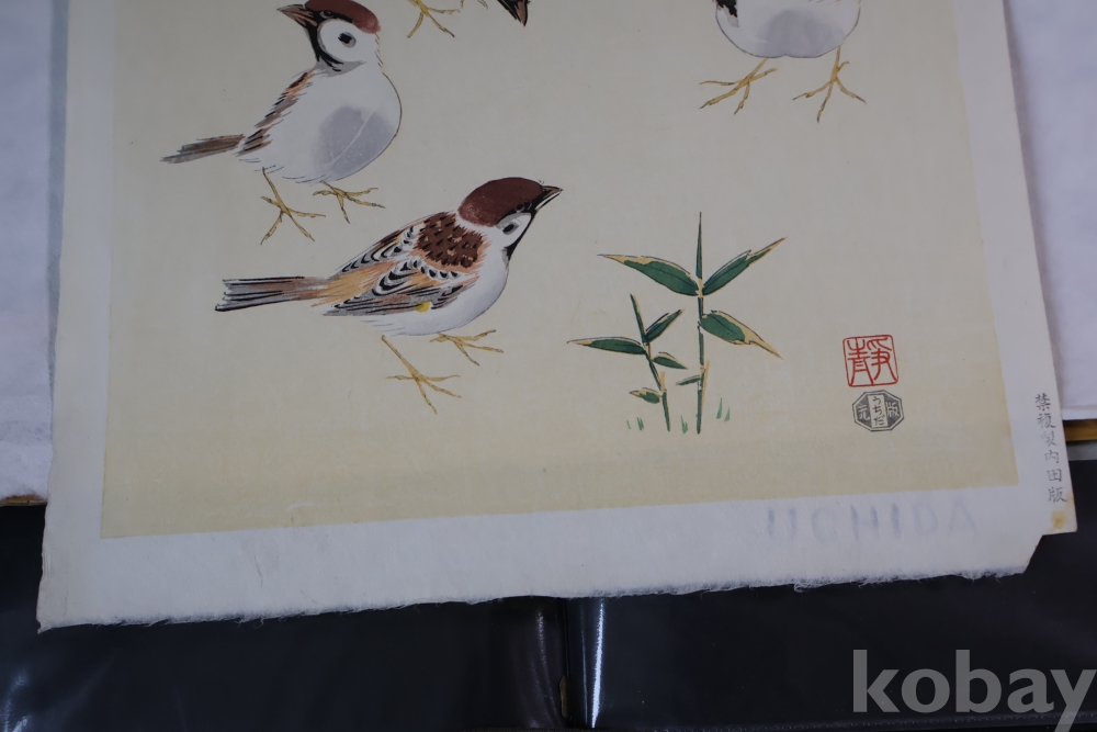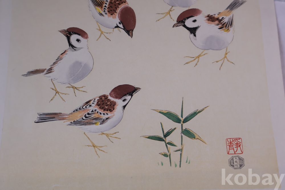 새 그림의 대가 시즈오의 원본 목판화 임니다 전세계{적인 인기 목판화가 임니다 Shizuo Ashikaga (足利静雄) 1917-1991