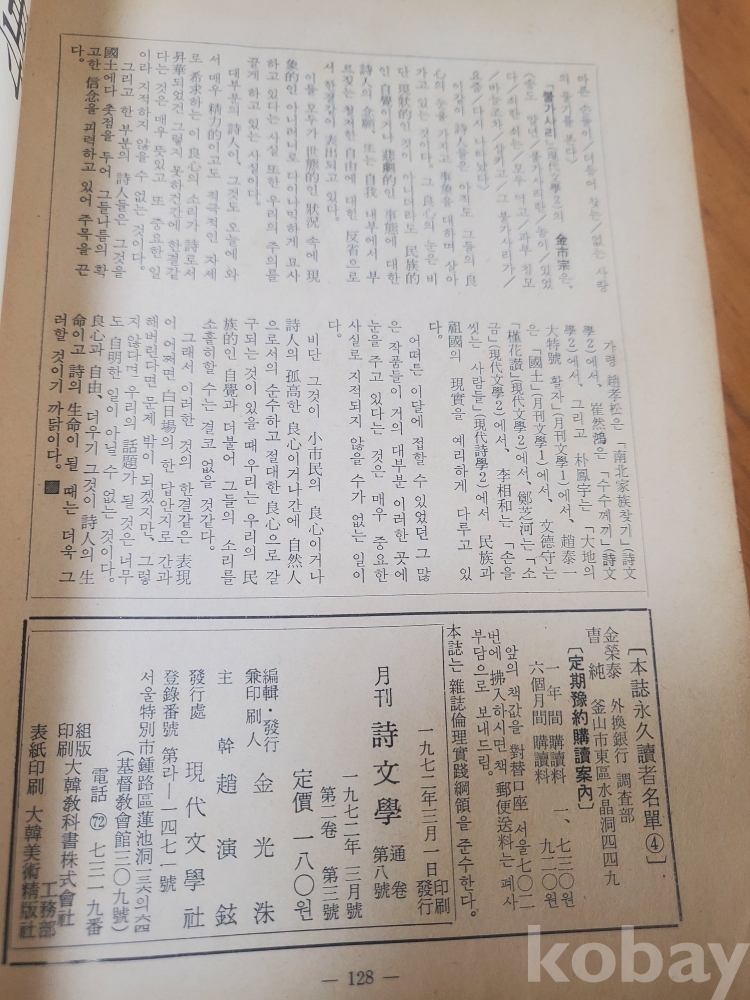 1. 시문학 통권 8호, 현대문학사, 1966년, 128쪽, 사진 참조