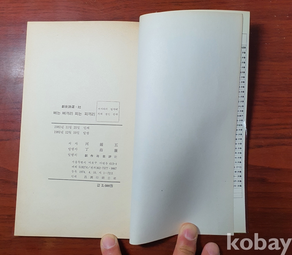 하종오 시집,창착과 비평사,1981년 초판,상태는 양호 깨끗한 시집