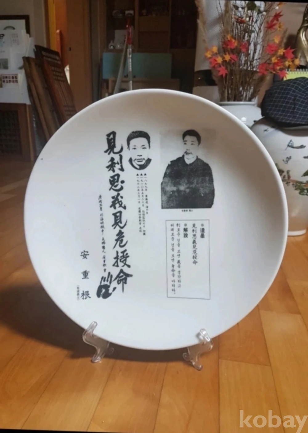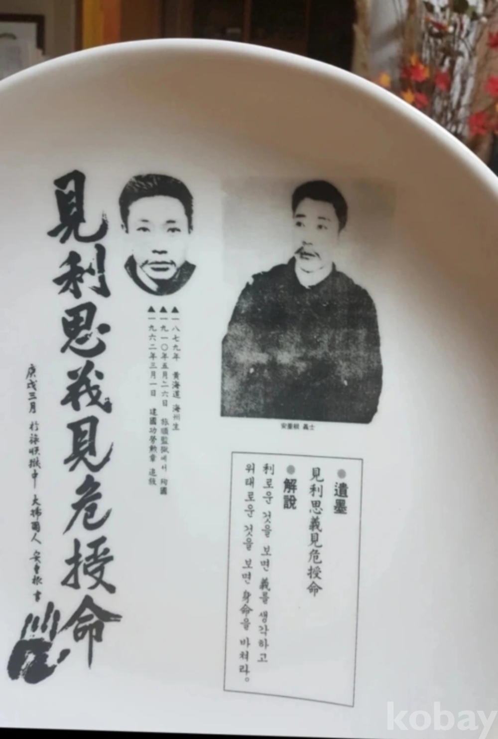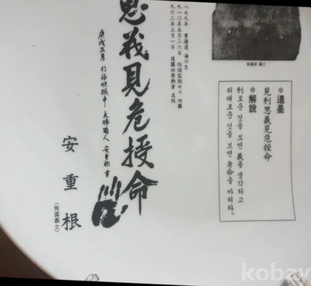 독립영웅 안중근 어록이 담긴 대형백자접시
