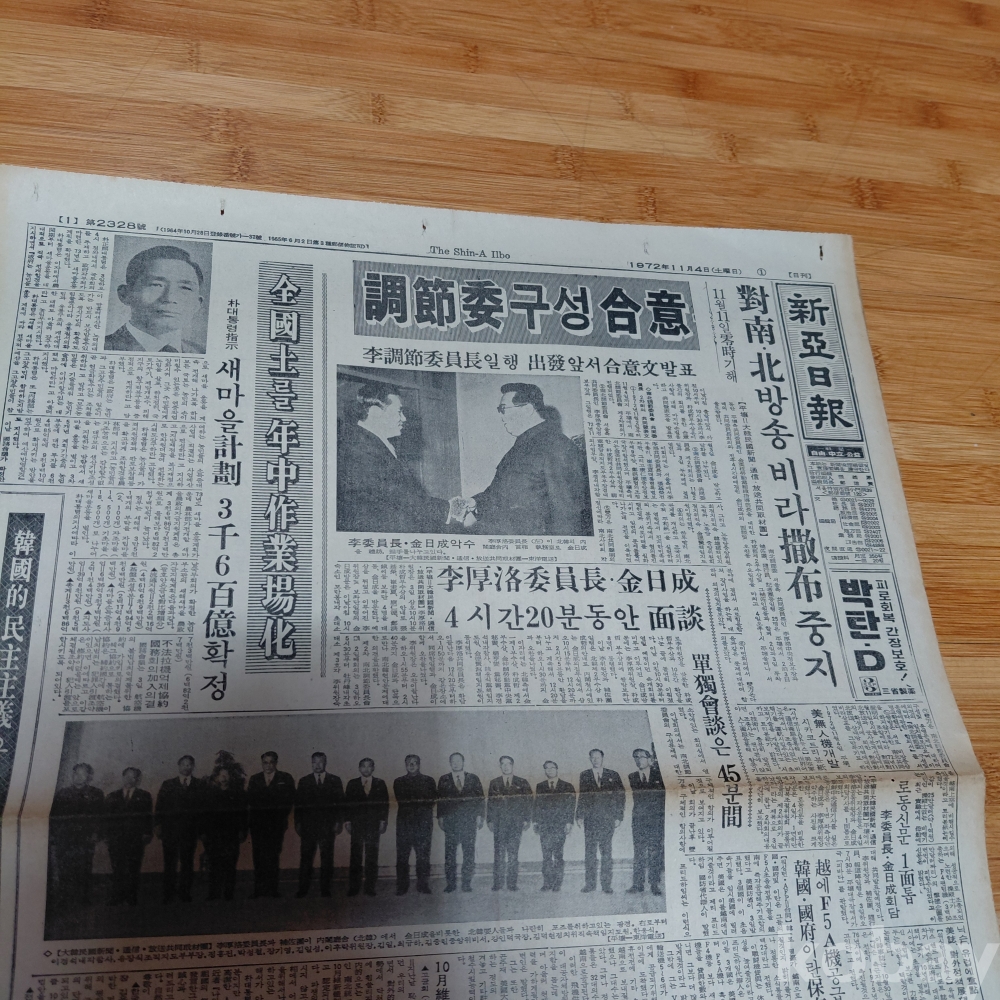 김일성 주석 이후락 중정부장 위원회 구성합의 정치면 메인기사 신아일보 1972년 11월4일 신문 올려드립니다