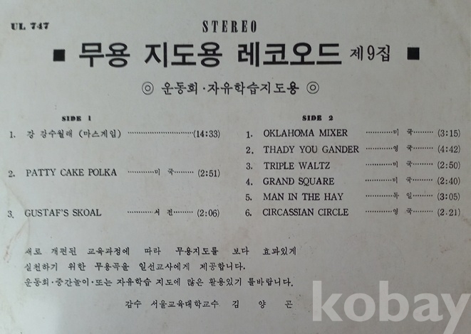 떠리/ (예전 동요,학습용교보재), "무용지도용 레코오드 제9집(운동회,자유학습지도용)" .