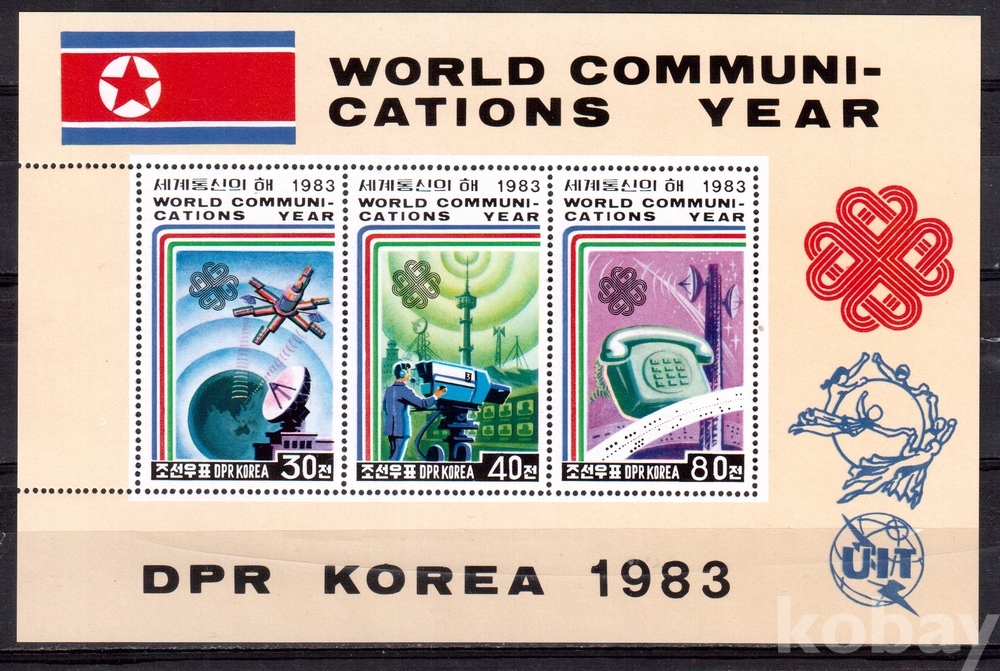 (통신) 북한 1983.10.30 세계통신의 해 sheetlet of 3 MNH