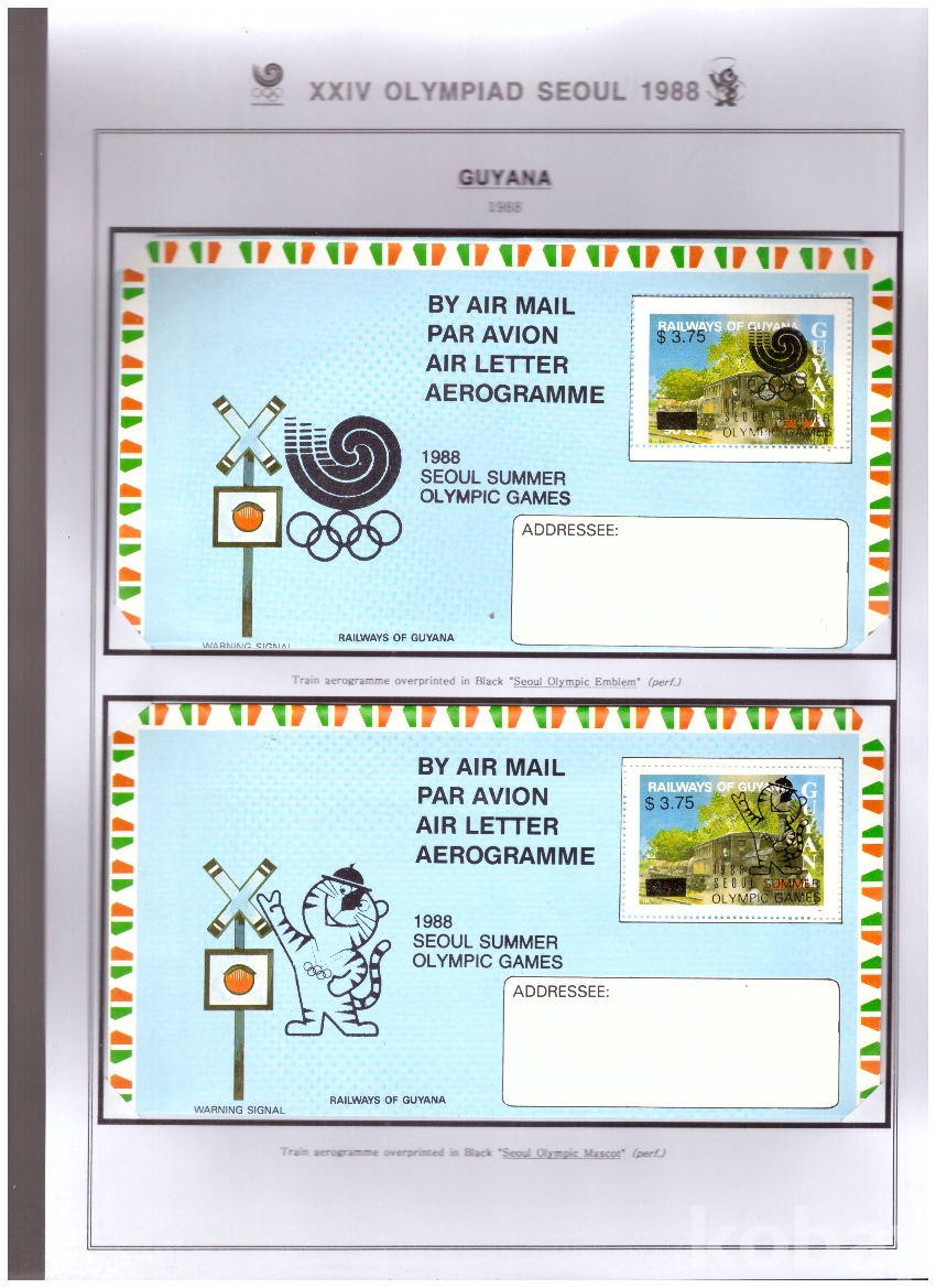 (서울올림픽) Guyana (가이아나) 1988 서울올림픽 엠블렘외 2완 항공서간 (덧인쇄)