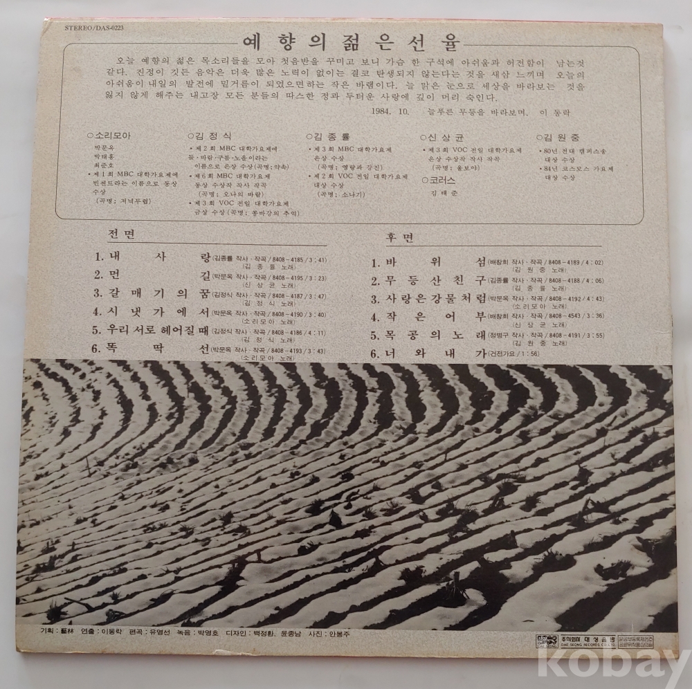 예향의 젊은선율Lp/내사랑,바위섬,무등산 친구