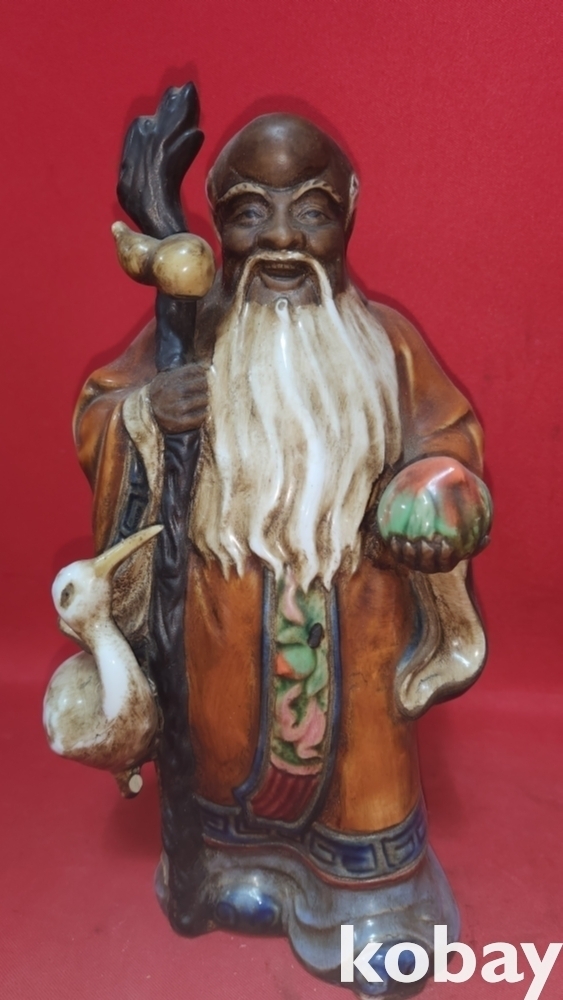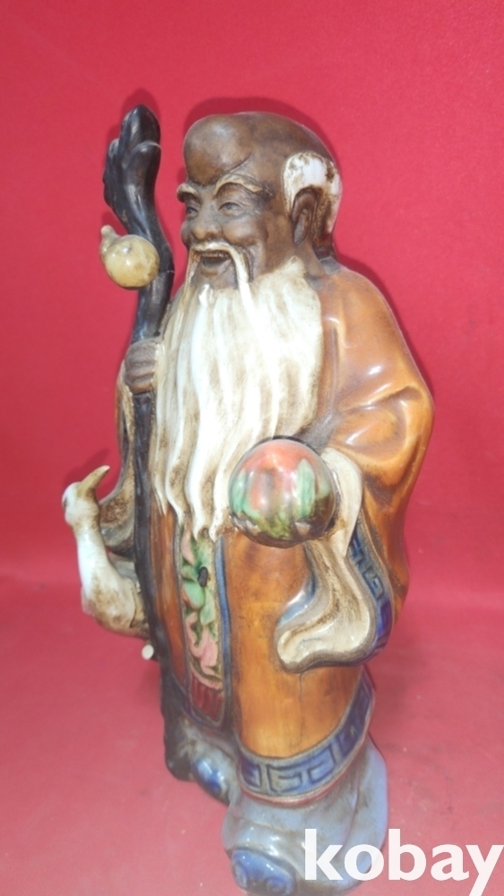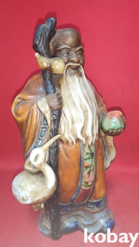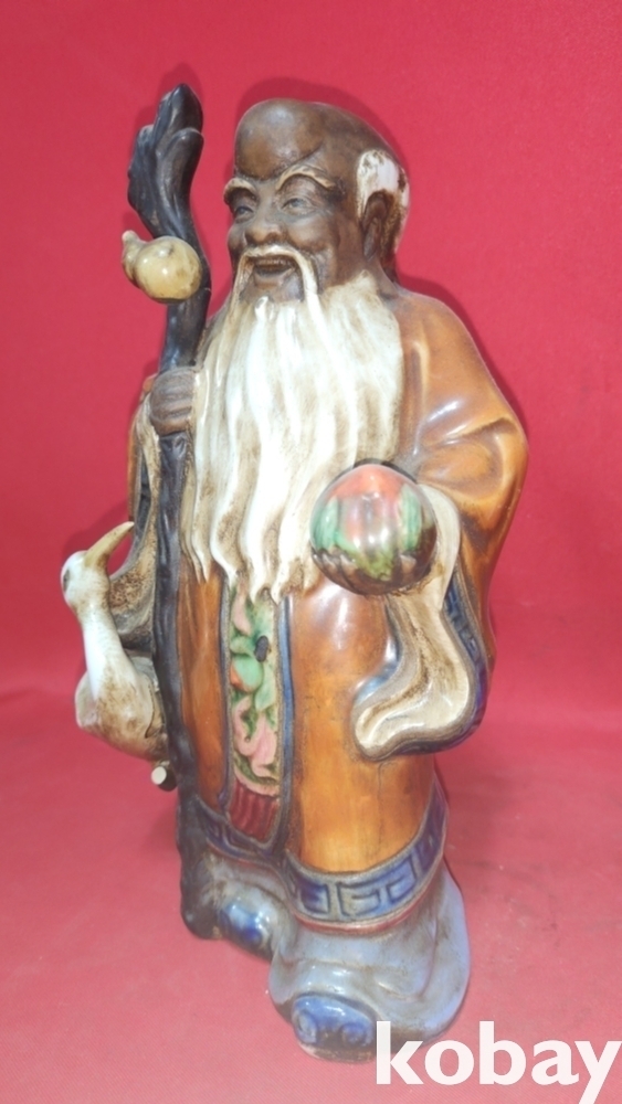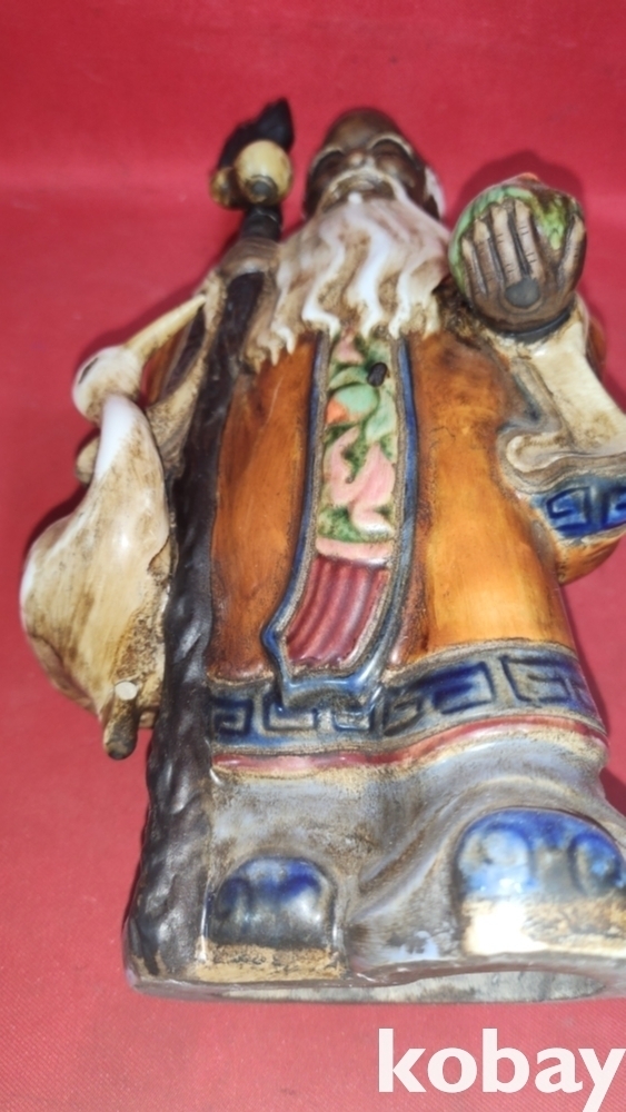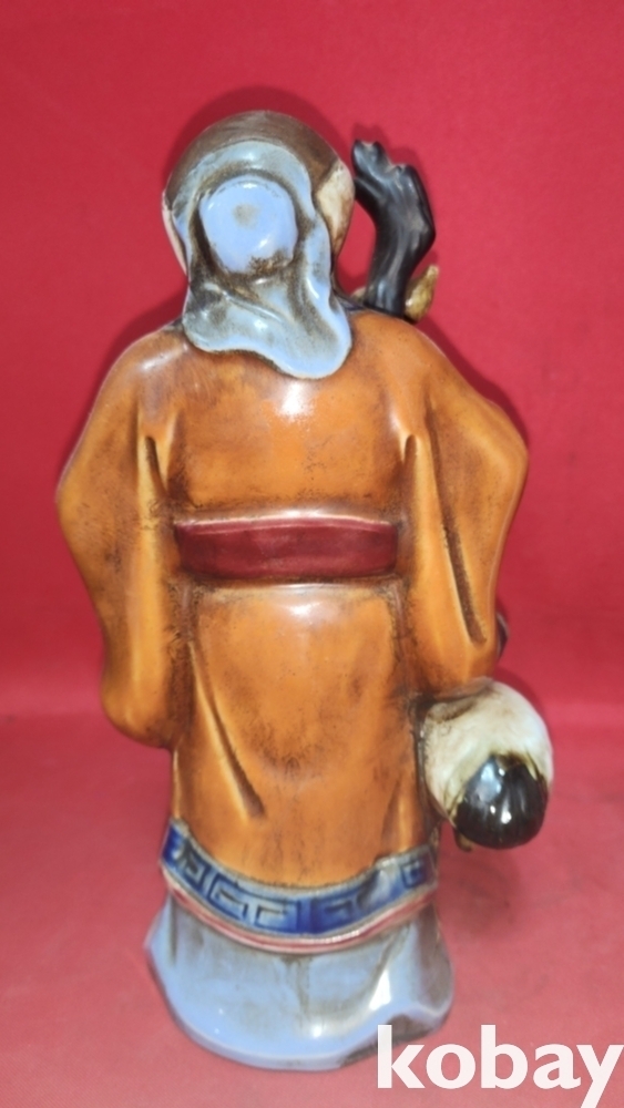 지팡이에 메달린 표주박과 왼손에 들고있는 천도 복숭아가 함께합니다,