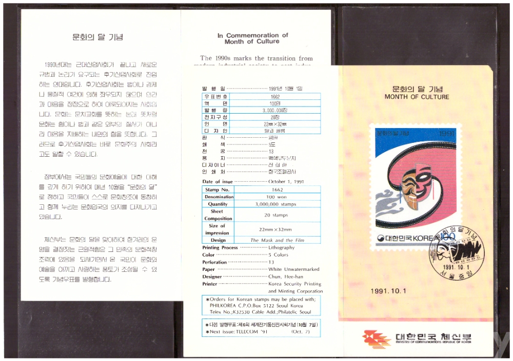 (안내카드) 1991.10.1 문화의 달 (접지않음)