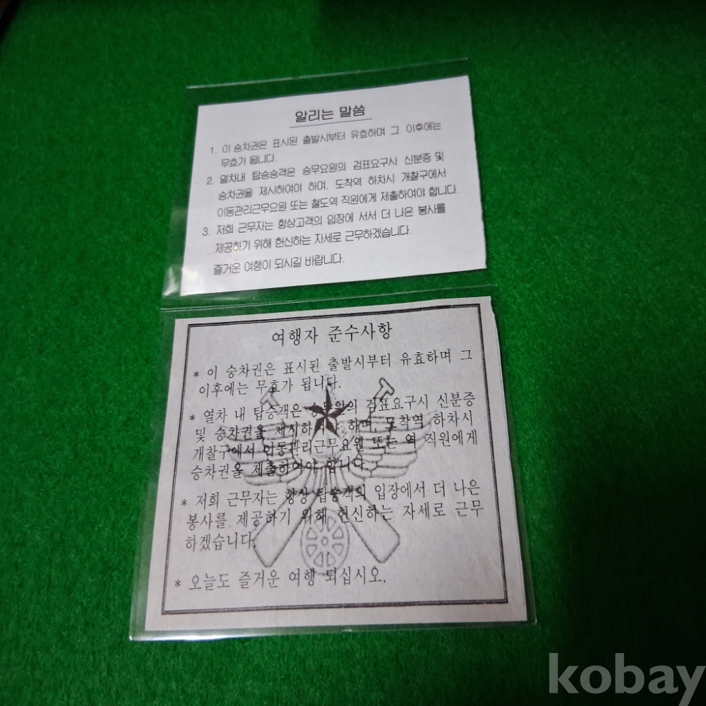한국철도 군용객차승차권 2매 사용제
