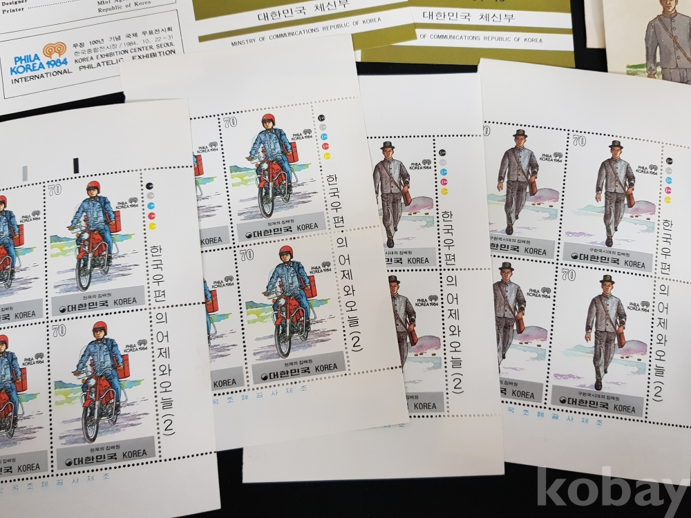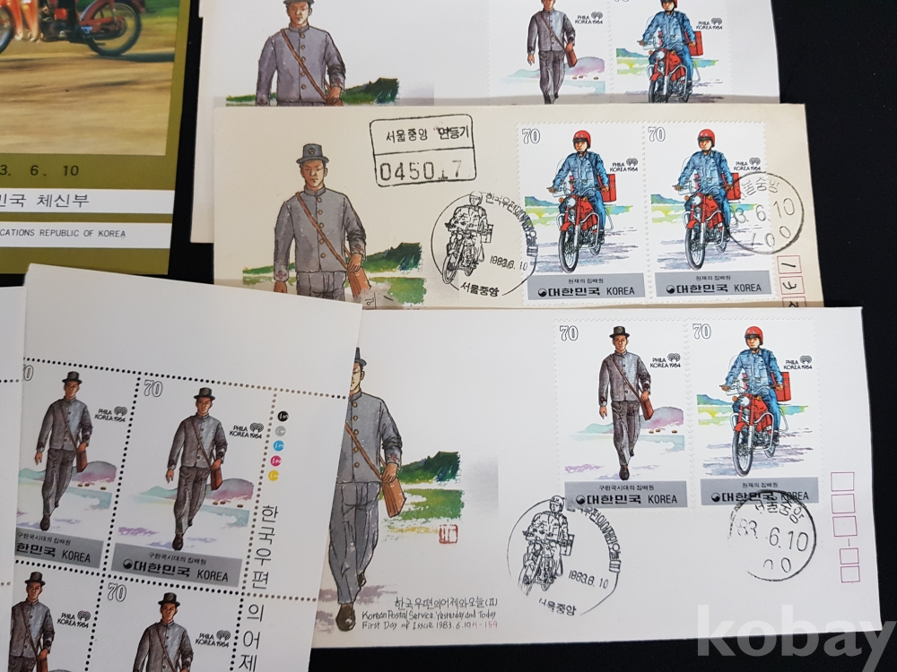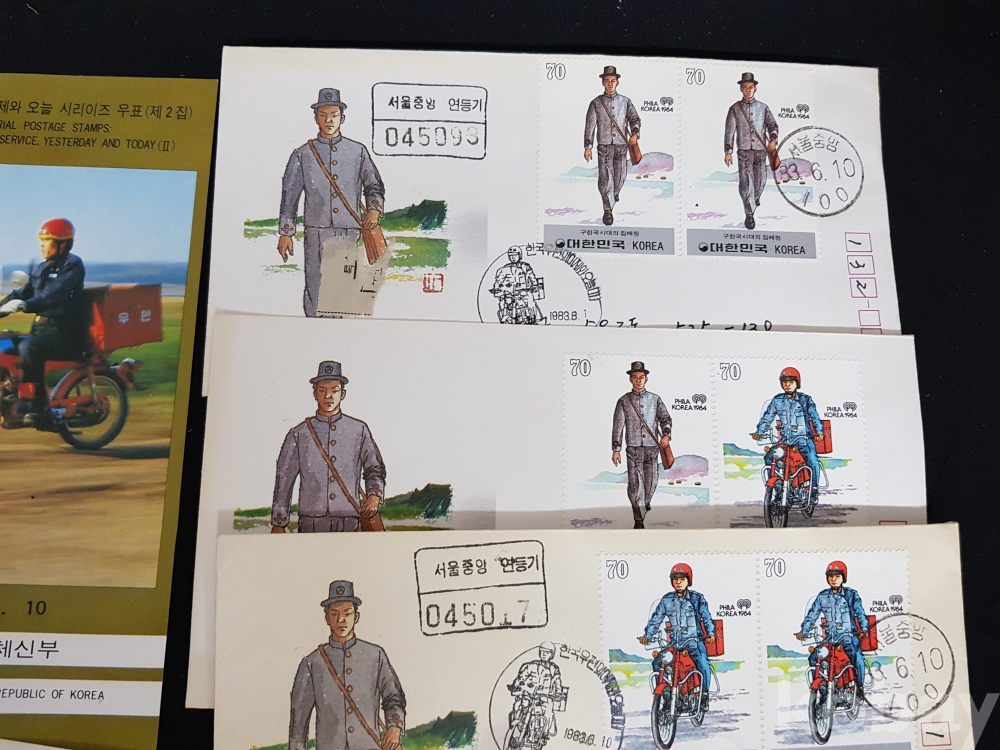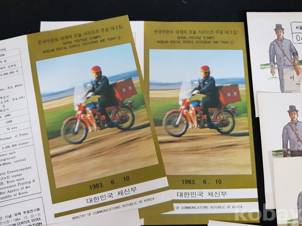 - 1983년 한국우편의 어제와 오늘 시리즈 제 2집 안내카드, 초일봉피, 명판 등 모음