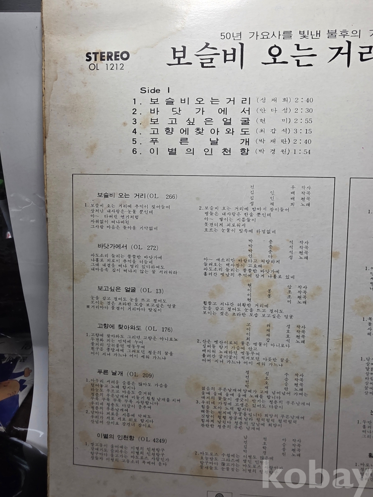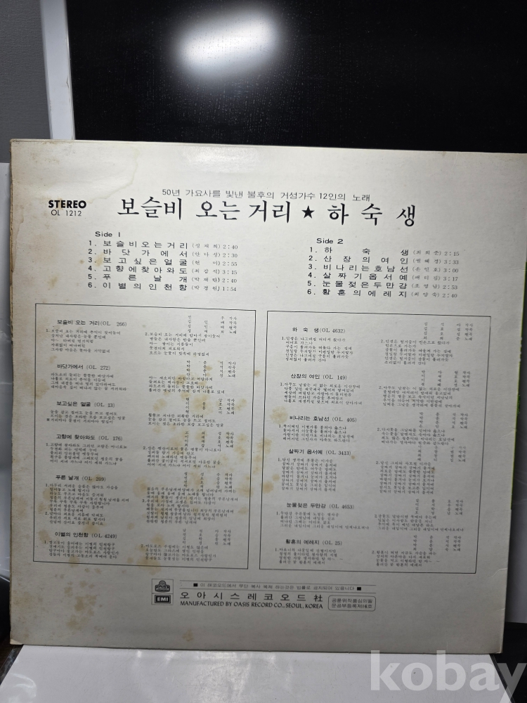 | 자켓상태 | EX : 약간의 마모, 모서리 찢김 존재 | 음반상태 | VG : 생활 기스 다수, 가벼운 노이즈 존재 | 발매정보 | 초반 | 가사지여부 | 무 |
