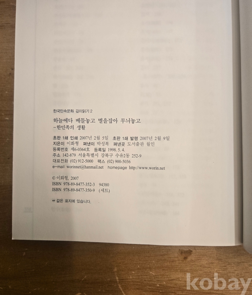 [한국문화사, 일상사, 의례 풍속] 이화형, <하늘에다 베틀놓고 별을잡아 무늬놓고>, 월인, 2007, p. 376, 상태 중상급(사진참조)