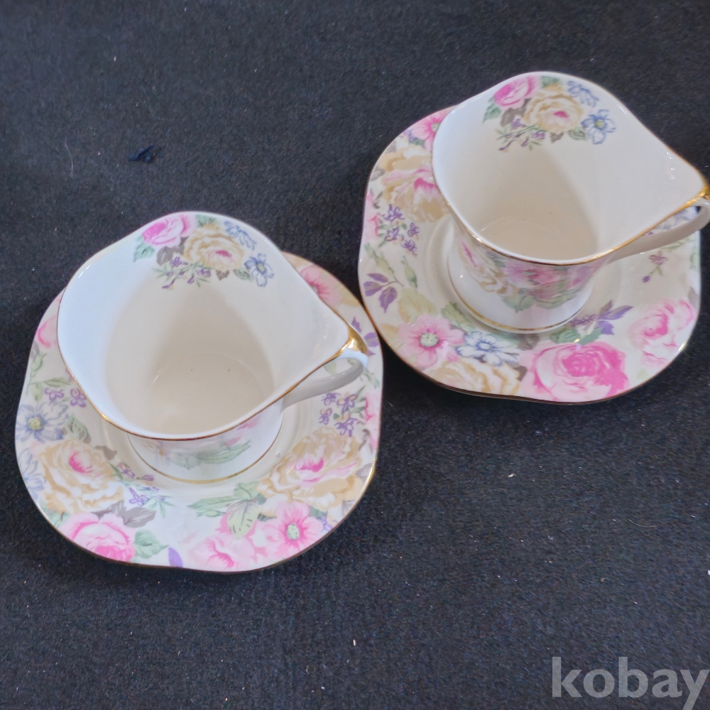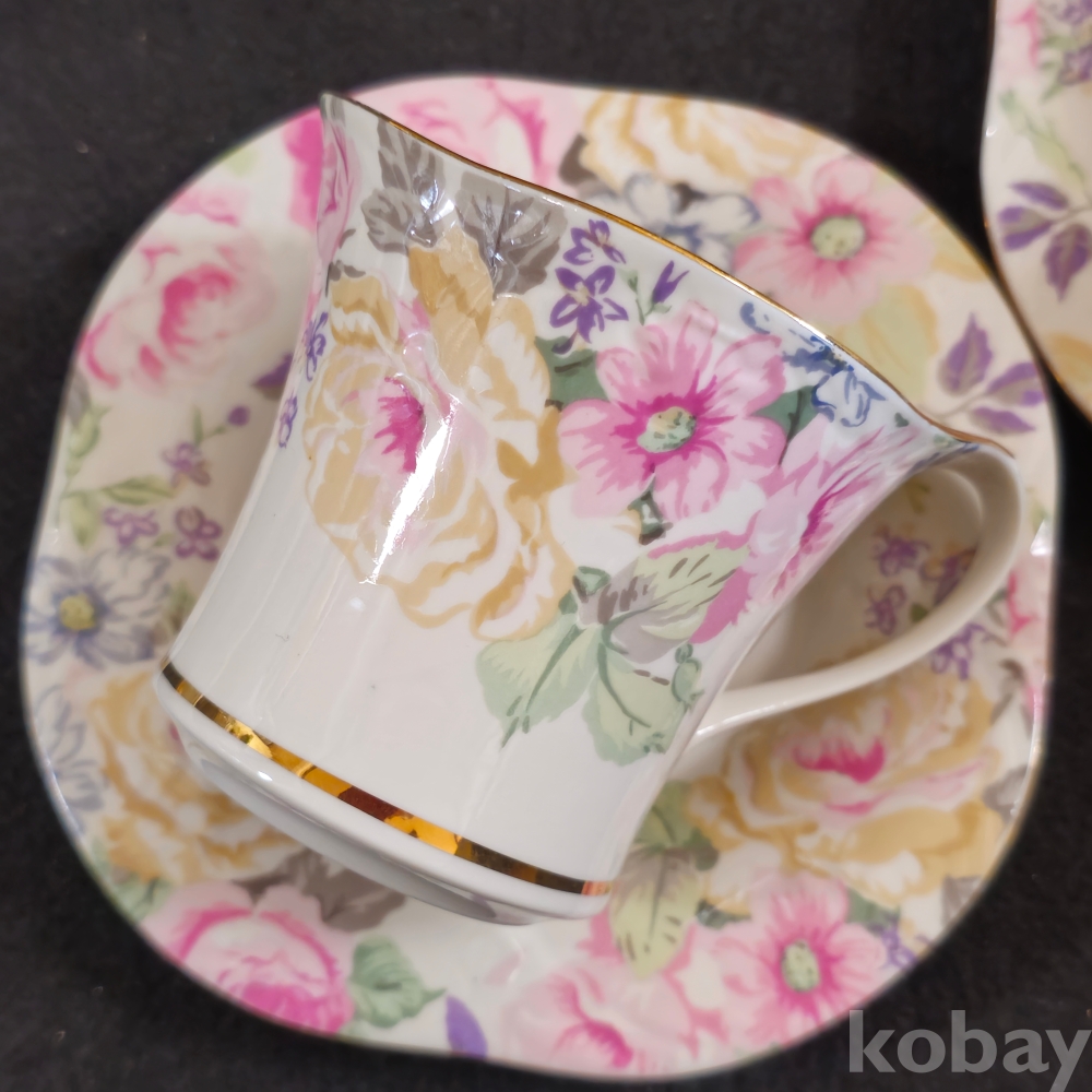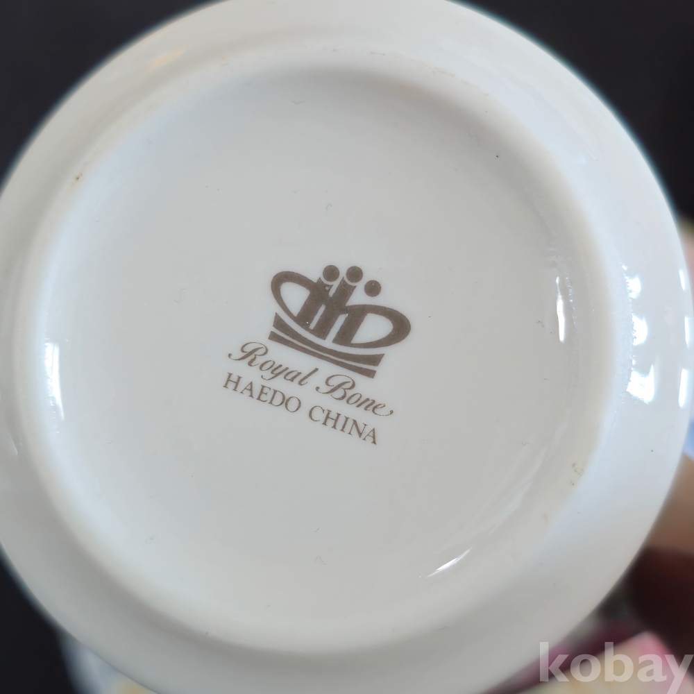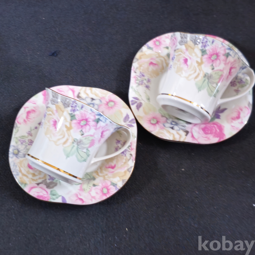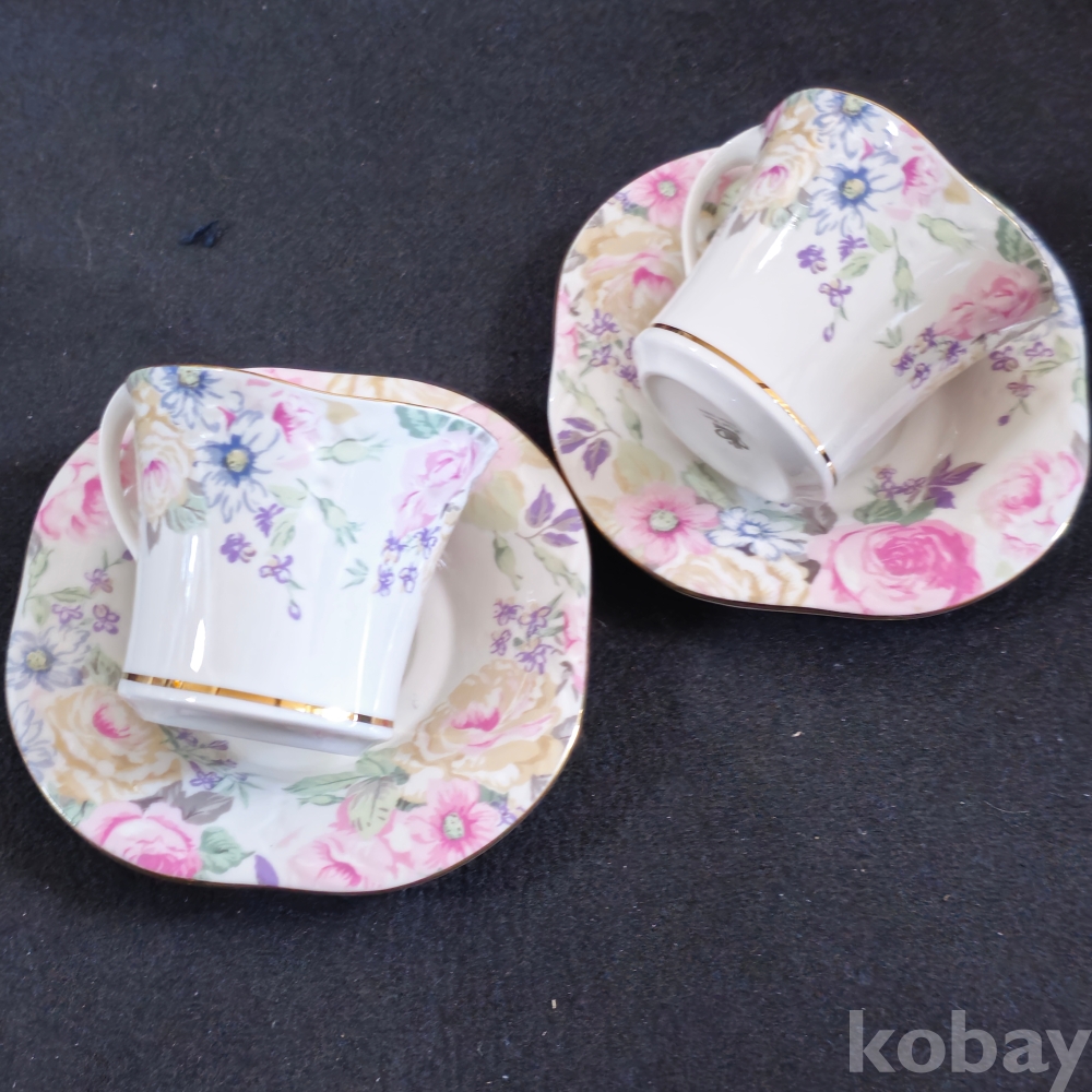 (((도자기커피잔))) 오래전 꽃그림 빈티지 커플도자기 커피잔 & 잔받침 (해도도자기