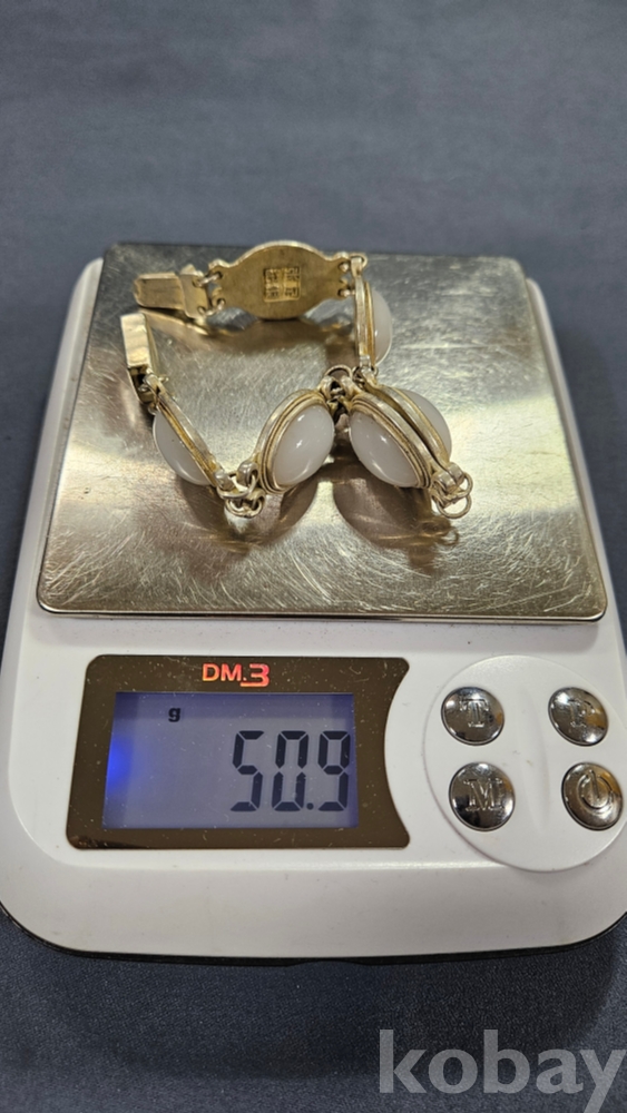 옥과 백동이 어우러진 팔찌 한점입니다.