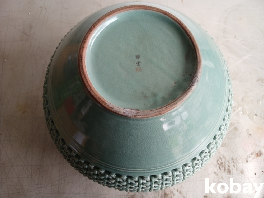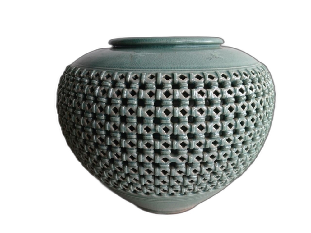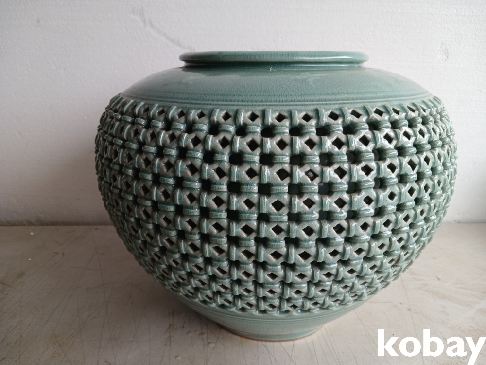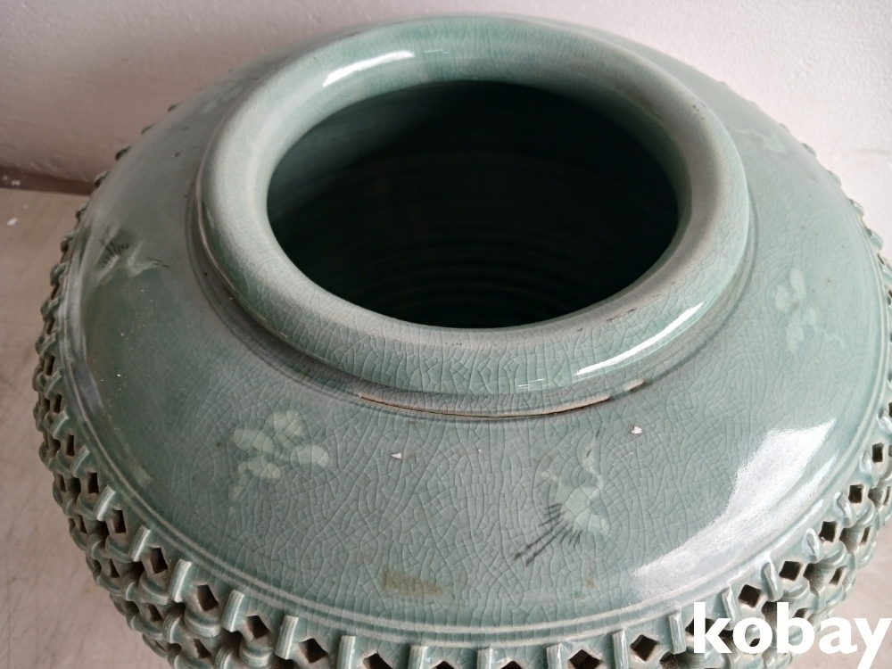운학문 투각 청자 도자기 입니다.