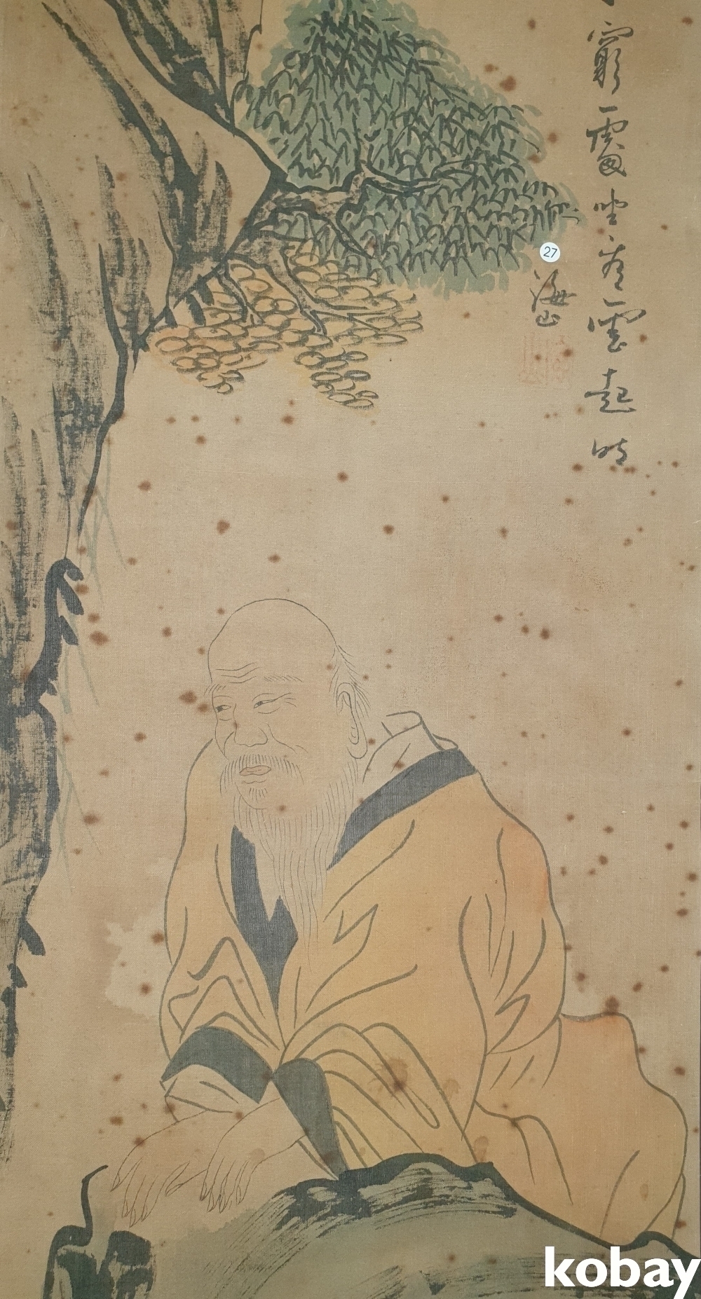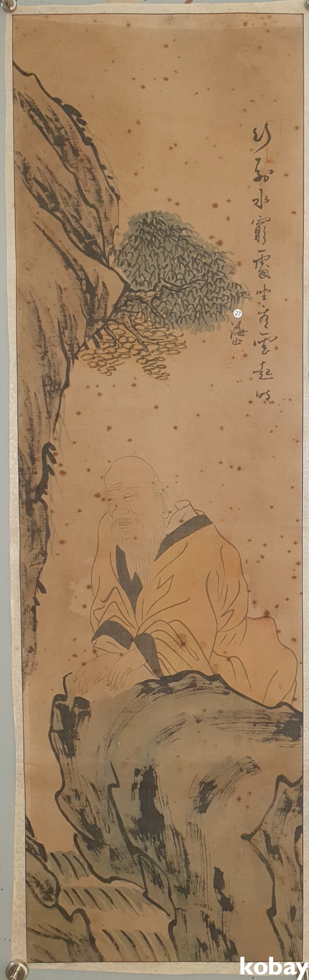 유명화가 해산 (海山) 수결과 낙관이 보이는 비단에 채색된 인물화입니다,