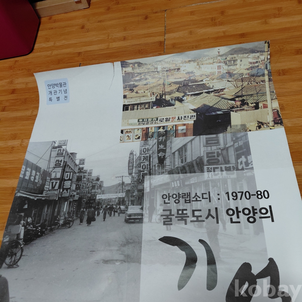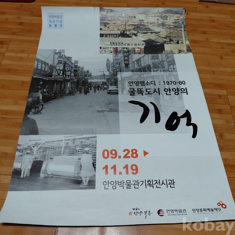 굴뚝도시 안양의기억 안양박물관 개관 기념 특별전 (양면인쇄)홍보 대형포스터 군데군데 훼손된 곳있음 테입 자욱있음 올려드립니다